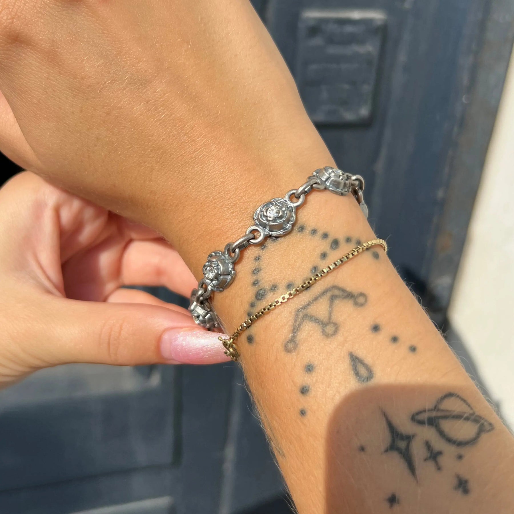 Varje ros på armbandet är detaljerat, vilket ger en unik struktur och djup som är vackert kompletterat av kristallerna. Detta armband är en idealisk gåva för ett speciellt tillfälle eller ett bra sätt att skämma bort dig själv med något extraordinärt. Bär den ensam för ett subtilt uttalande, eller kombinera det med andra smycken för ett mer skiktat utseende.