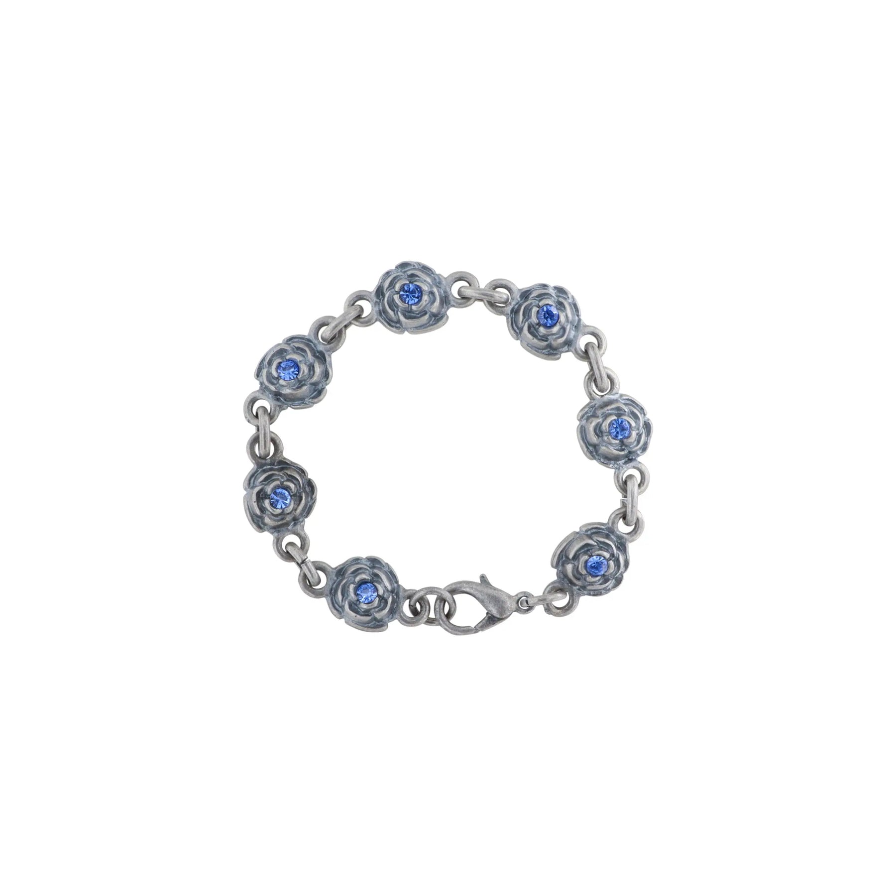 Upplev den sofistikerade charmen hos vårt armband i silverpläterade mässing som vackert förenar blommor rosar med glittrande kristaller. Detta eleganta armband är en riktig skatt i alla smyckekollektioner och är tillgänglig med antingen blå eller tydliga kristaller som ger en touch av färg eller klassisk elegans till ditt utseende. Armbandet är utformat för att vara bekvämt och ögonfallande, och det finns i två storlekar: 17 cm för en tätare passform eller 19,5 cm för lite mer rymlighet.