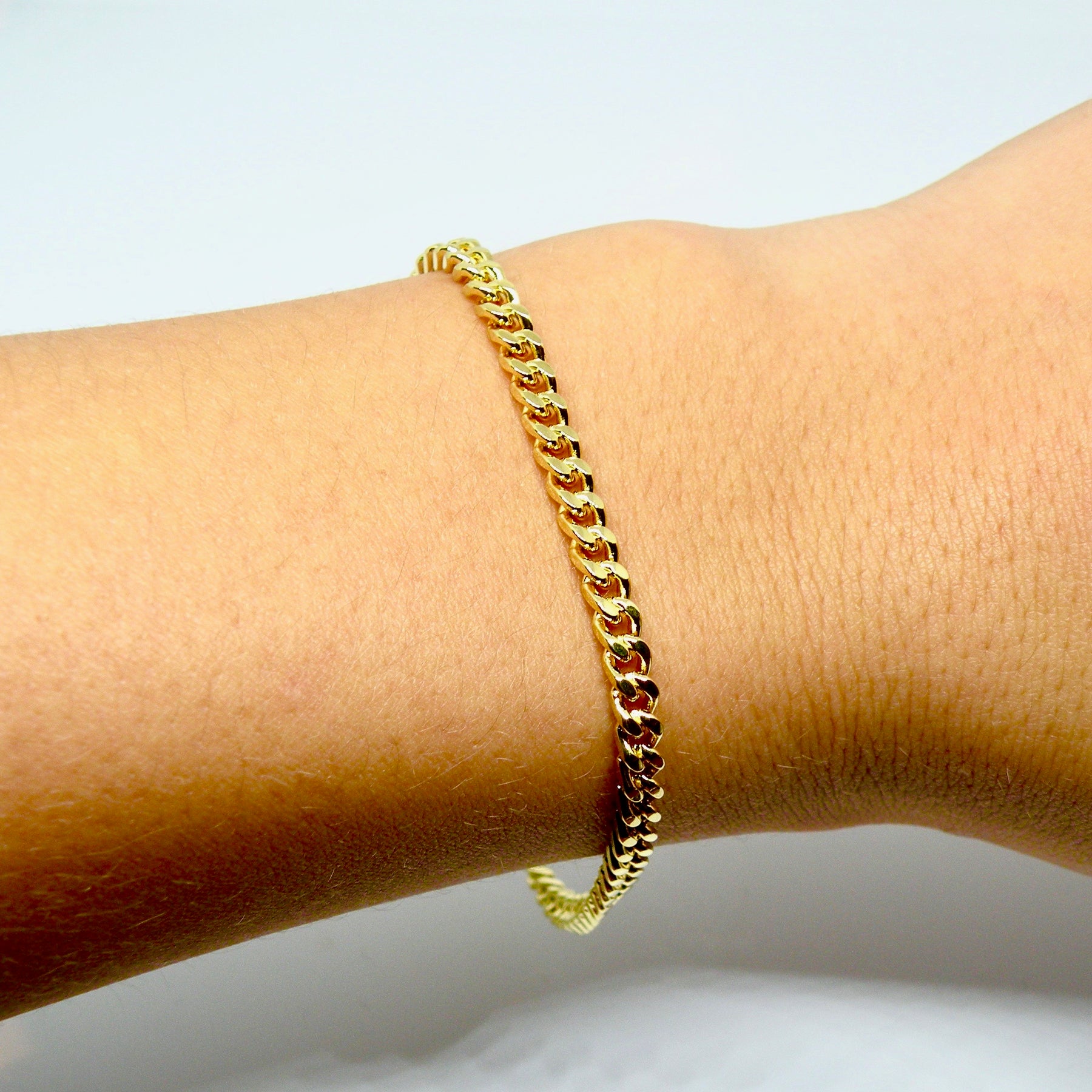 Armband, rustningsfasettkedja, förgylld mässing, 17-19 cm/3,5 mm