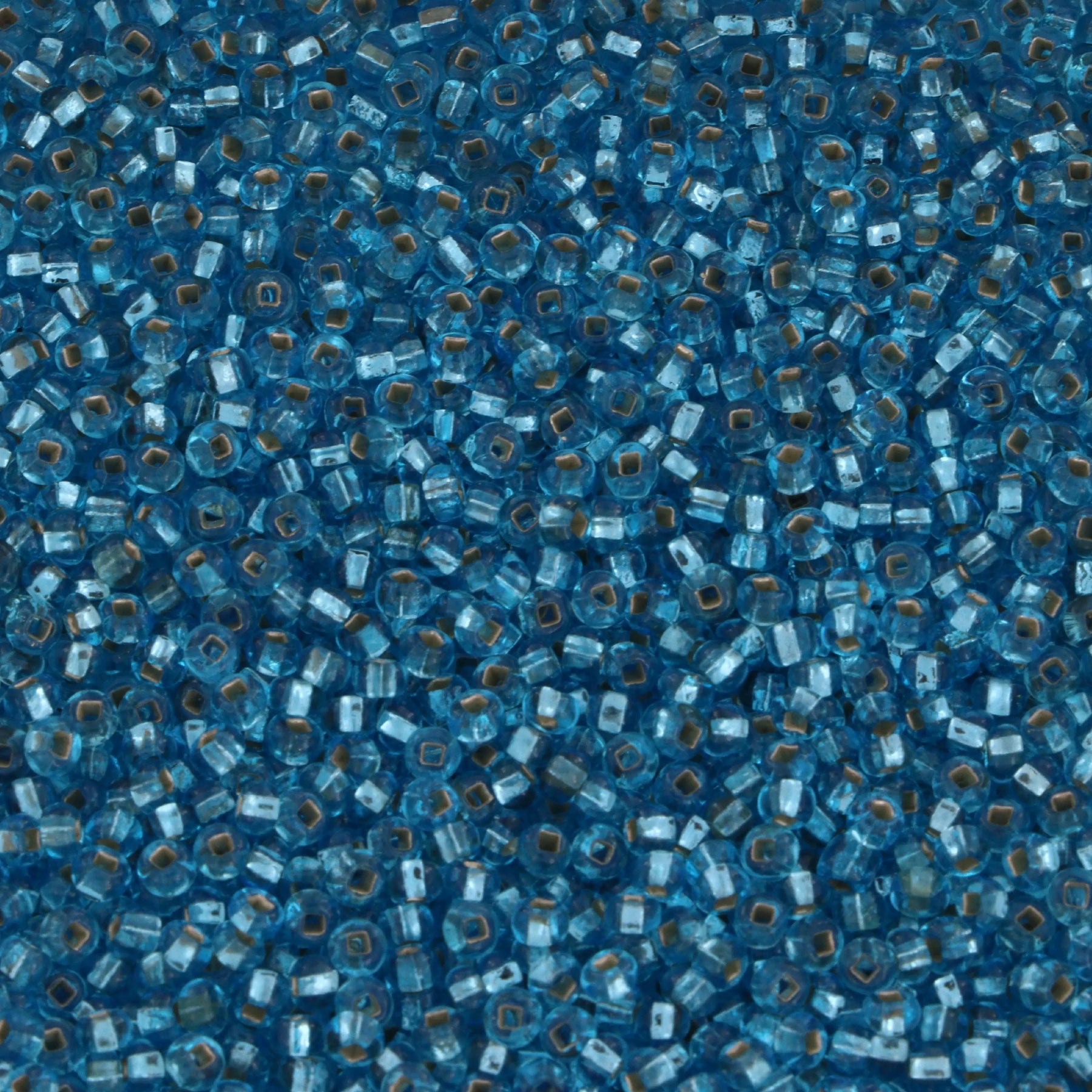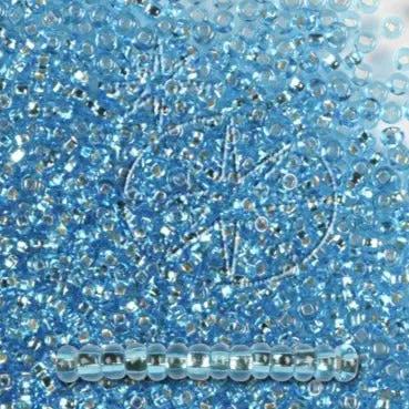 Vackra små transparent akvamarinblå glaspärlor med silverfoder.