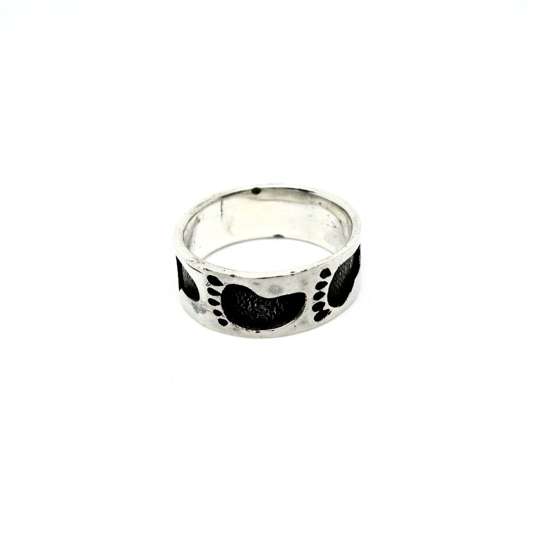 Upplev den perfekta kombinationen av stil och elegans med vår fingerring i både förgyllt silver och sterlingsilver, prydd med små fotavtryck i en minimalistisk design. Denna ring är skapad för att vara både en vacker accessoar och en symbol för de små stegen vi tar i livet.
