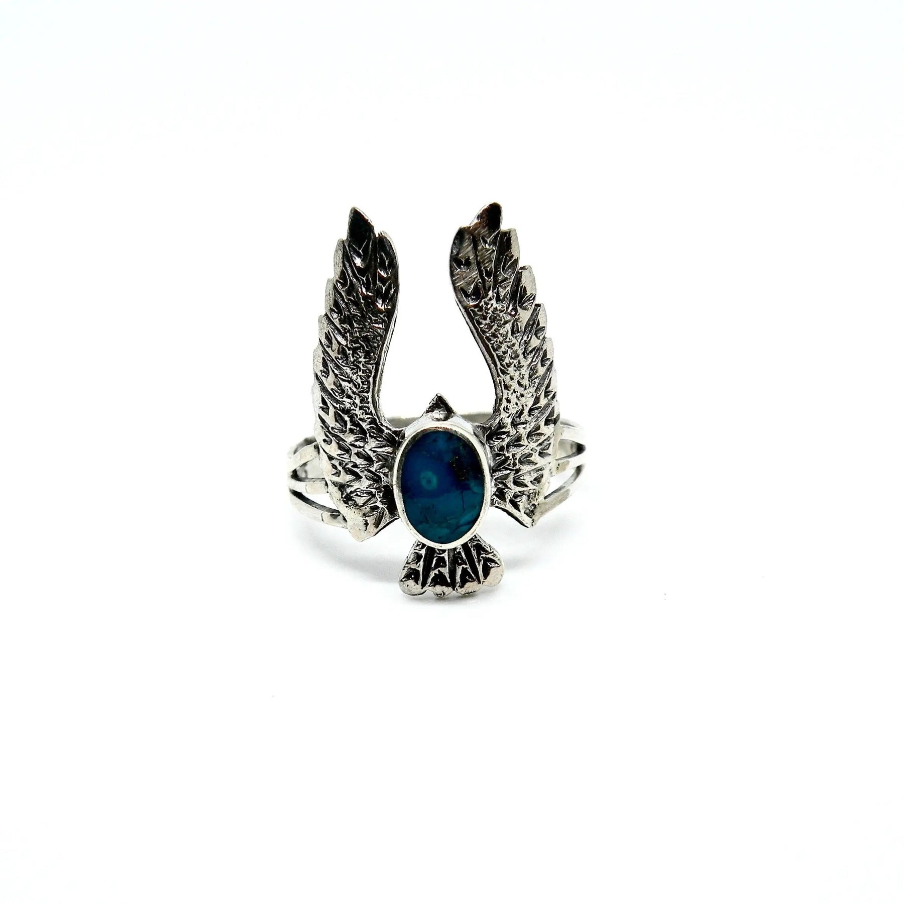 Fingerring, örn med onyx och turkos, sterlingsilver