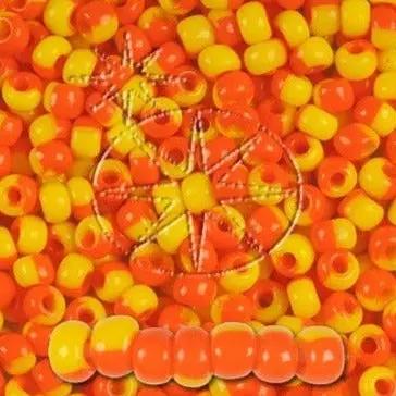 Flerfärgade glaspärlor, preciosa, gul och orange harlequin, bra köp