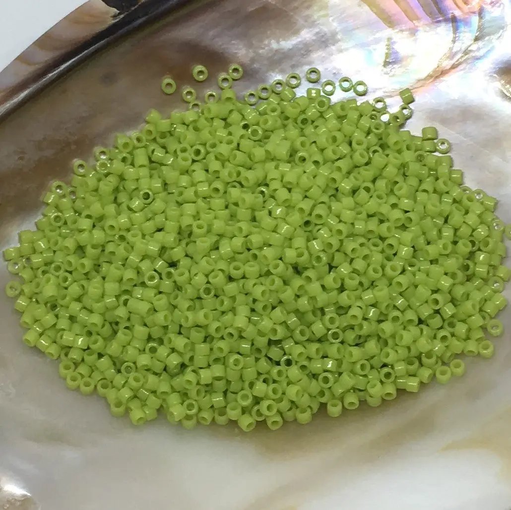 Gröna glaspärlor, miyuki delica Pärlor, ogenomskinlig chartreuse