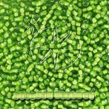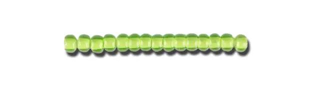 Små ljusgröna transparenta glaspärlor med vitt foder.