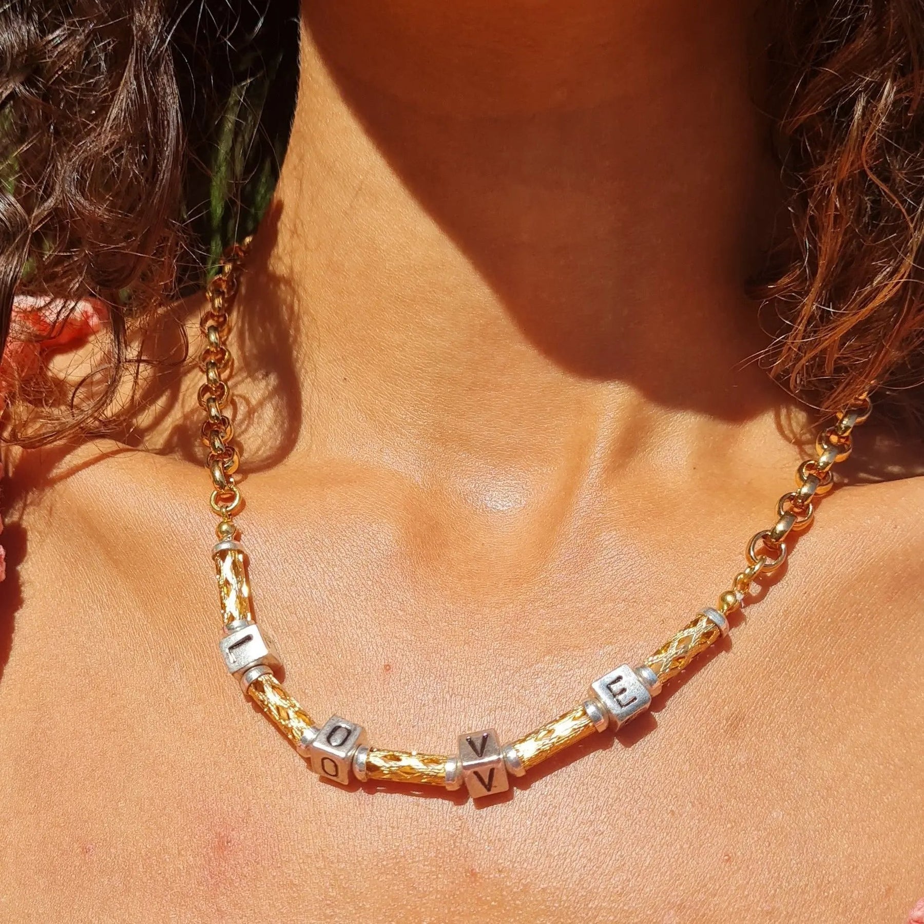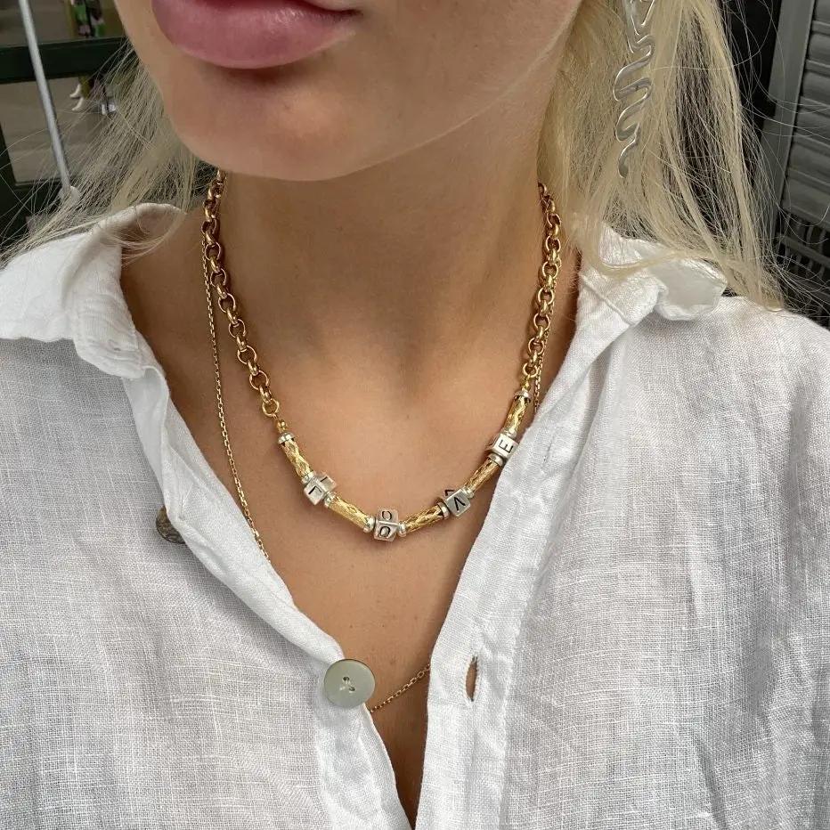 Halsband, l o v e, guldpläterad mässing, 45 cm/6,5 mm