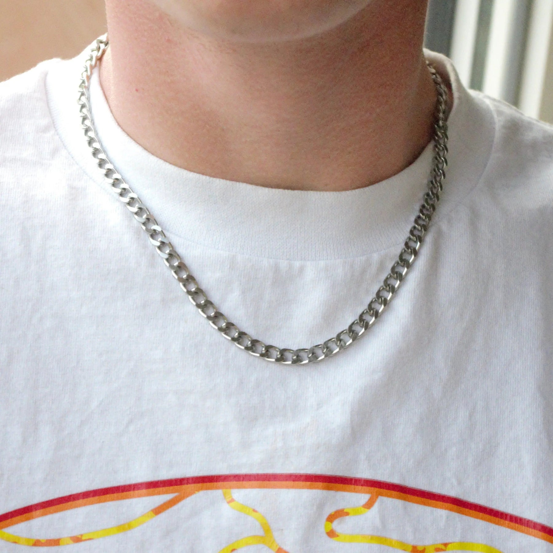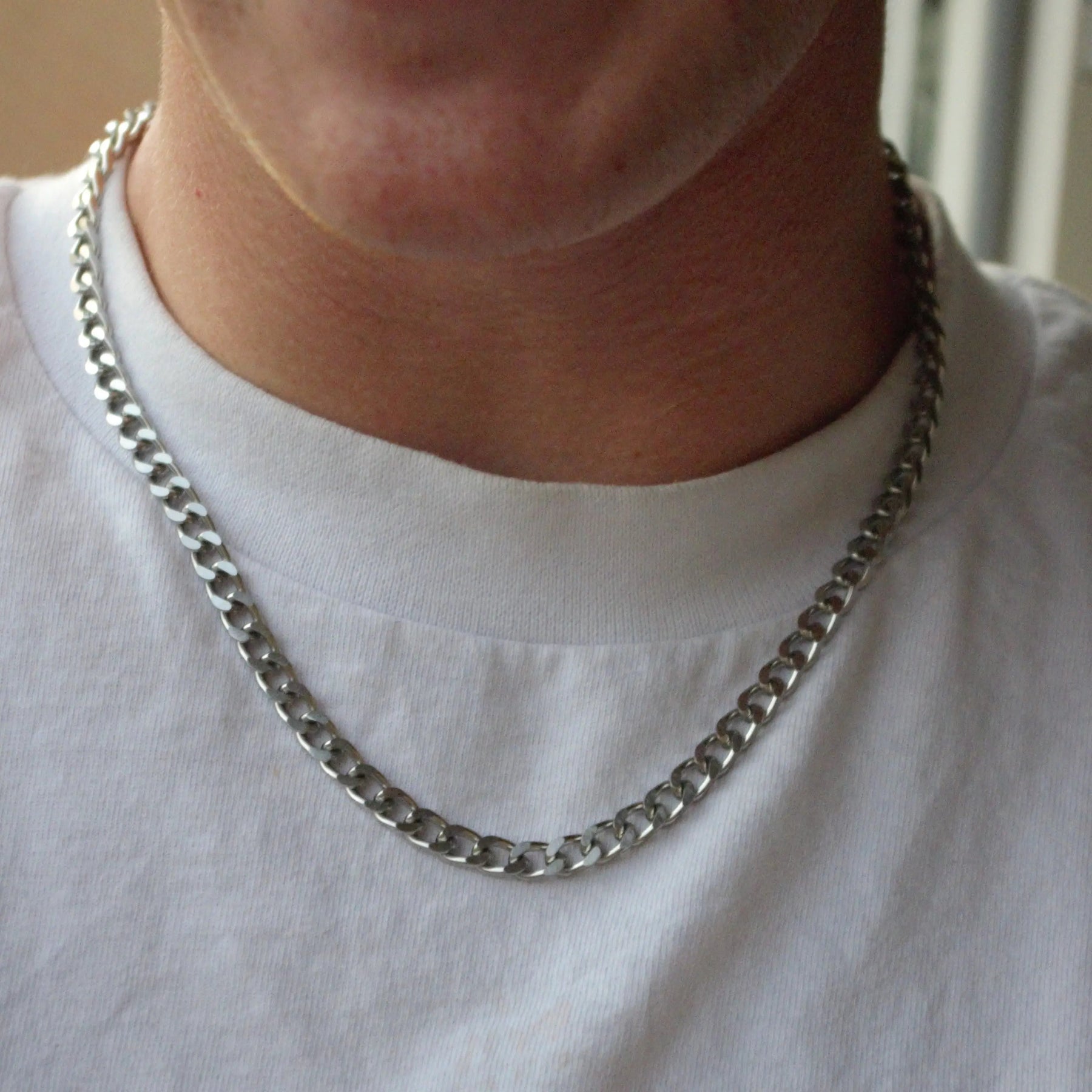 Halsband, chunky panser fasettkedja, stål, 40-60 cm/5,5 mm