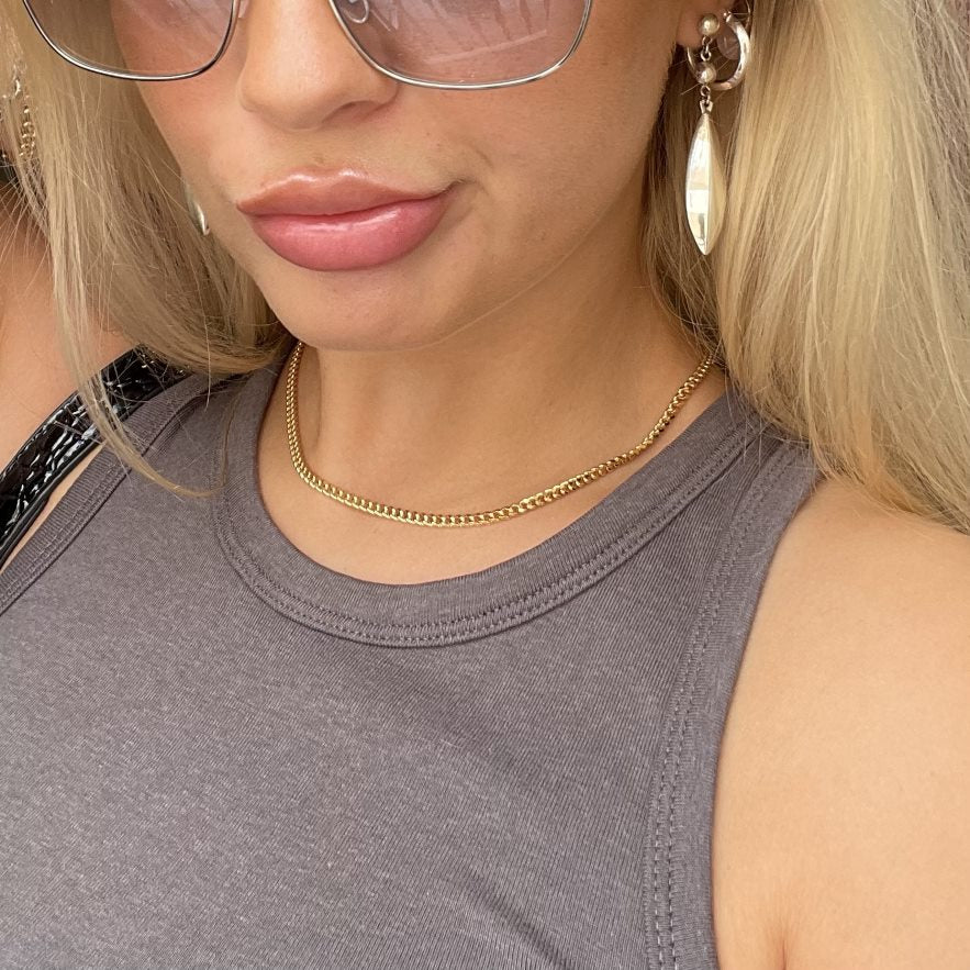 Halsband, rustningsfasettkedja, förgylld mässing, 40-55 cm, 3,5 mm