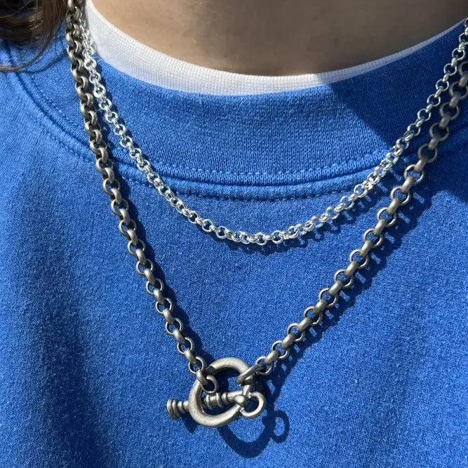 Upptäck skönheten hos vårt eleganta halsband med ärtkedja, som finns i både förgylld och silverpläterad mässing. Detta smycke är utformat för att ge en touch av stil till vilken outfit som helst, oavsett om du väljer att bära det ensamt eller i kombination med andra halsband och hängen från vår kollektion.