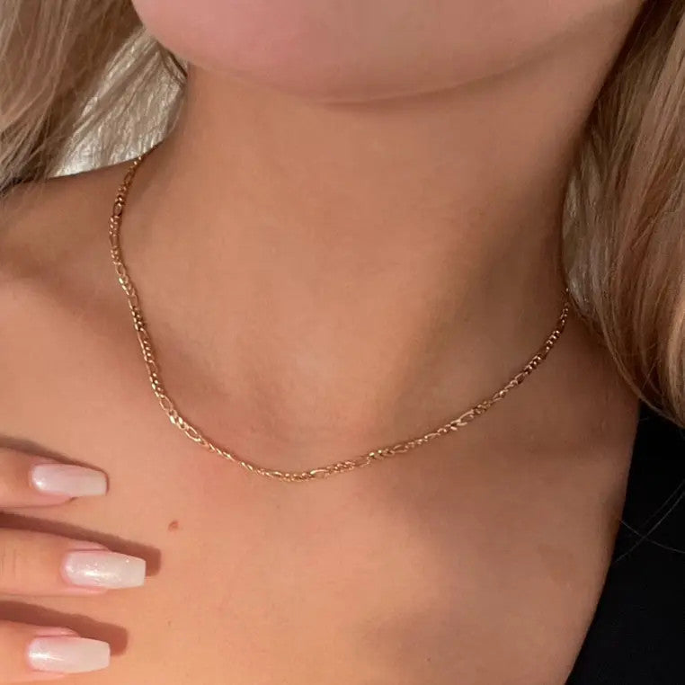 Upptäck skönheten i vårt eleganta Figaro-halsband, tillverkat av sterlingsilver och tillgängligt i både förgyllt och klassisk version. Detta tidlösa smycke är designat för att ge en touch av stil till vilken outfit som helst, oavsett om det bärs ensamt eller tillsammans med våra många andra halsband och hängen.