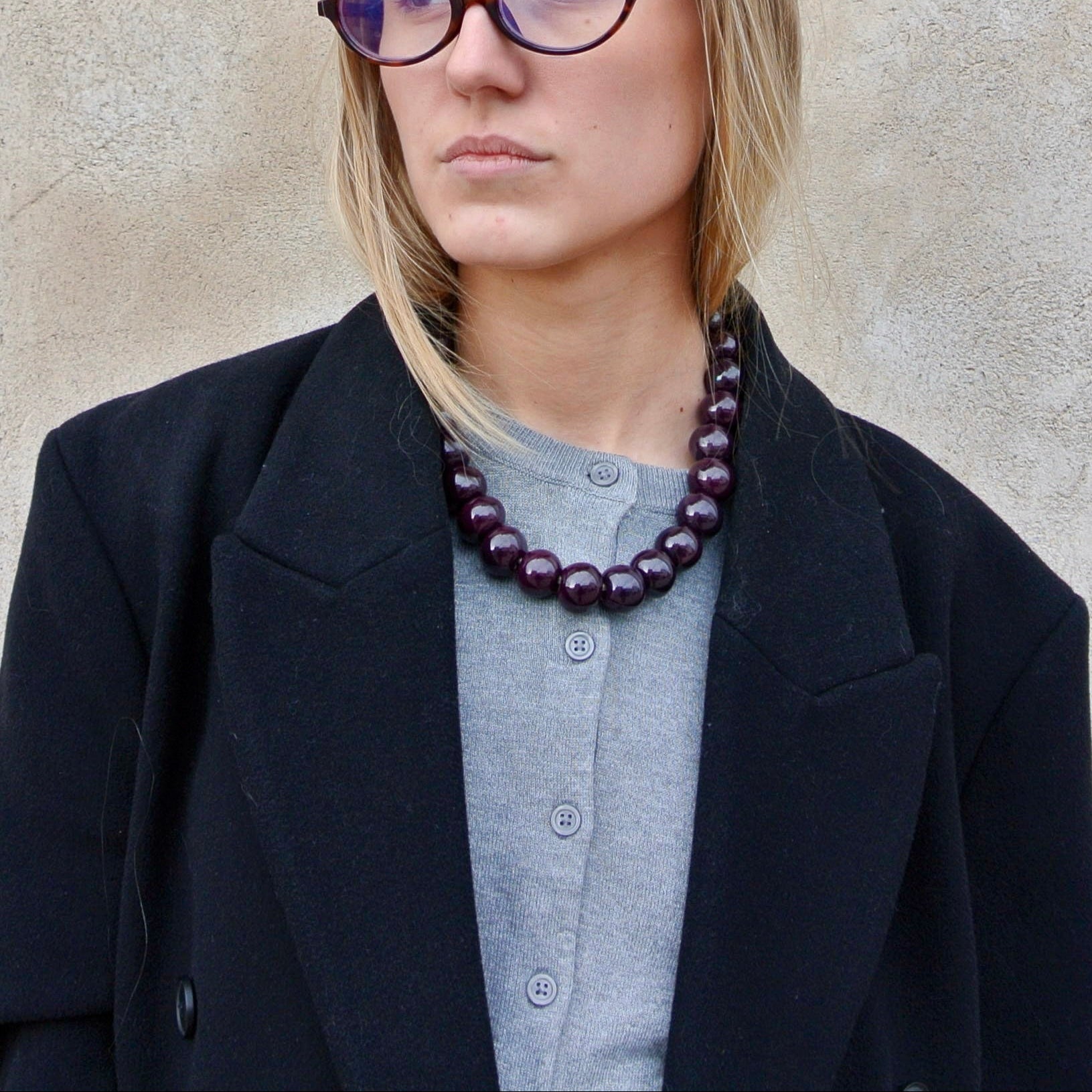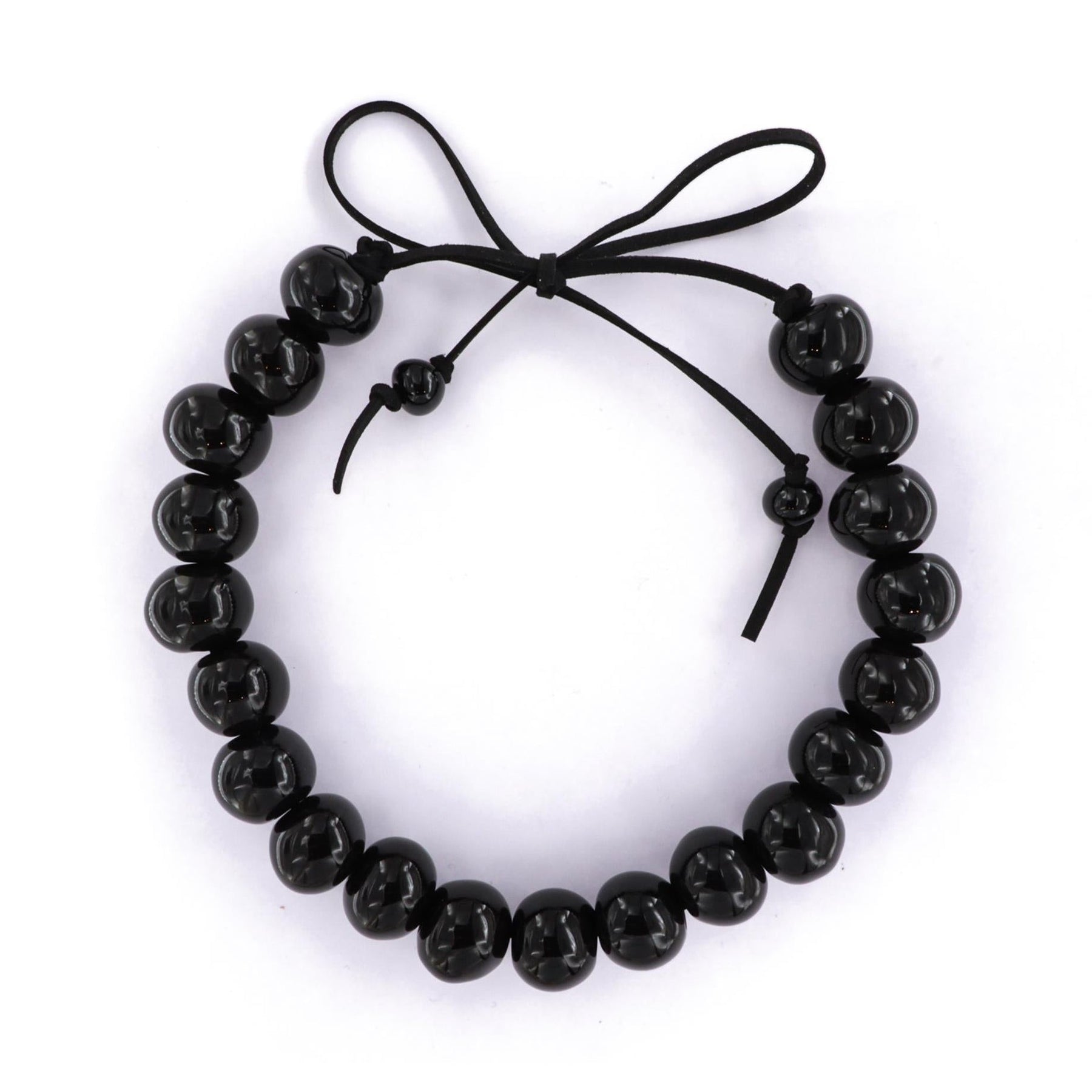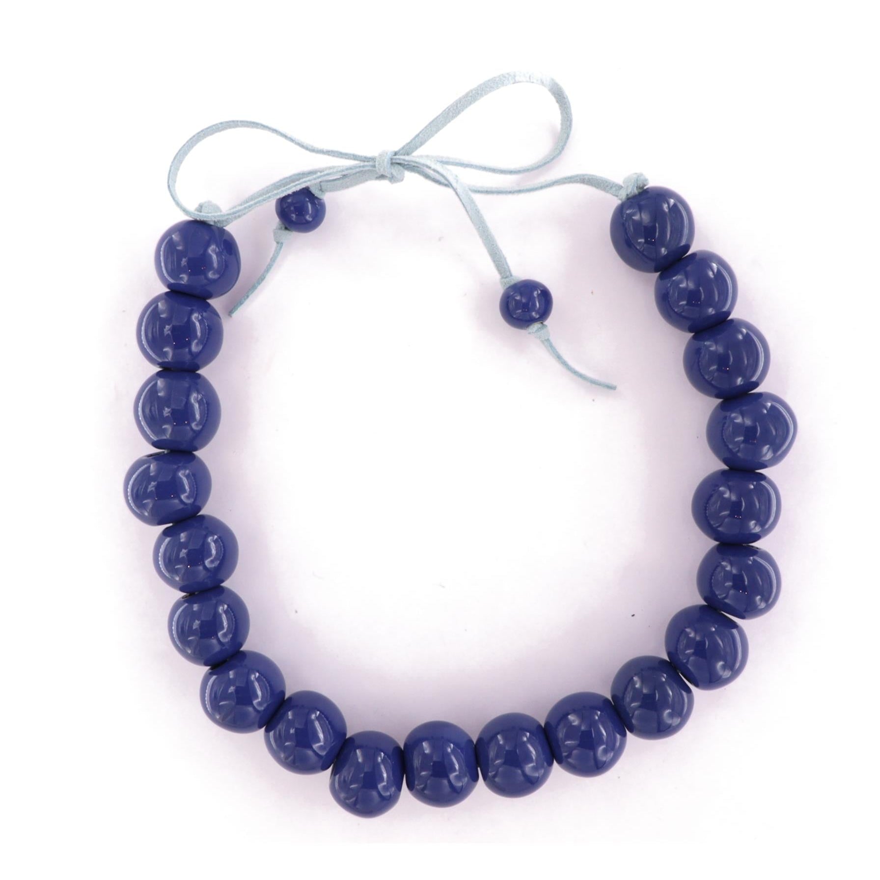 En smuk og iøjnefaldende halskæde bestående af keramikperler, som samlet måler 40 cm. Perlerne sidder på en blød ruskindssnor, der måler 90 cm, hvilket gør halskæden justerbar og nem at tilpasse efter dit look.