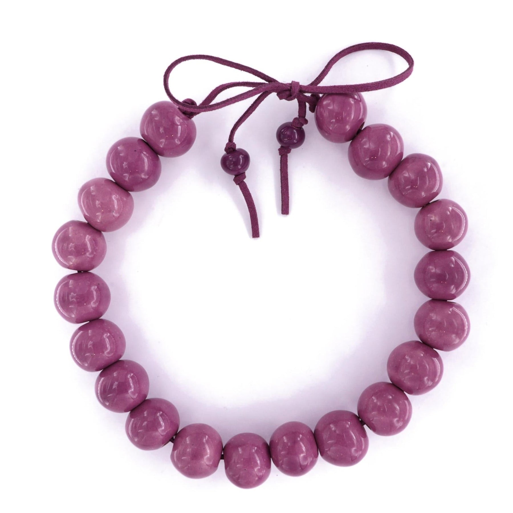 Halskæde, keramik perler på ruskindssnor, justerbar, flere varianter