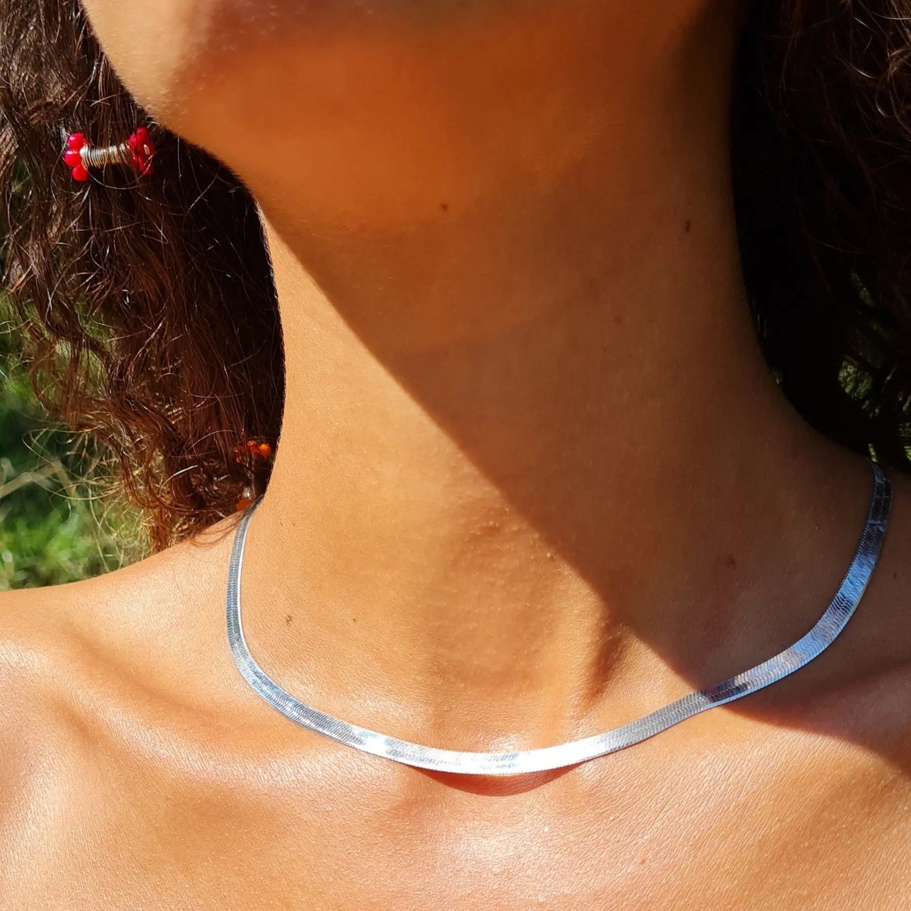 Upplev skönheten i vårt eleganta ormhalsband, designat i certifierat återvunnet sterlingsilver. Halsbandet sitter vackert nära halsen och är perfekt för både vardagsbruk och festliga tillfällen. Bär kedjan ensam för en minimalistisk look, eller kombinera den med våra många andra halsband och hängen för att skapa din unika stil.