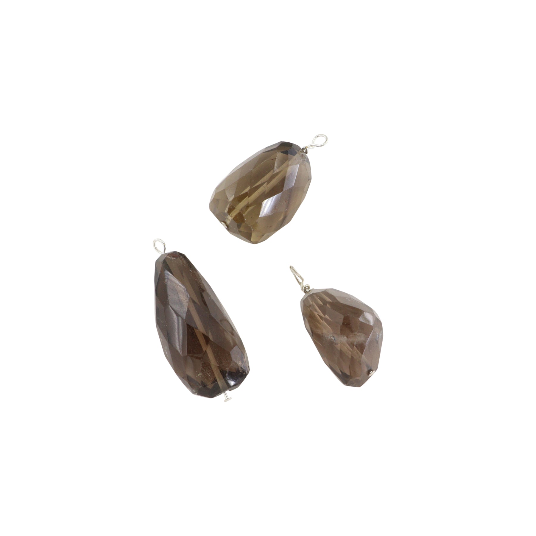 Upptäck skönheten i vår hand -pickade ädelstenänger, tillgängliga i lysande citrin, djup rökkvarts eller hisnande ametist. Varje sten är unikt markerad med en elegant pärlstång i silverpläterad mässing som går genom stenen och ger en modern touch. Storleken, färgen och formen på varje ädelsten kan variera, vilket säkerställer att varje hänge är helt unikt.