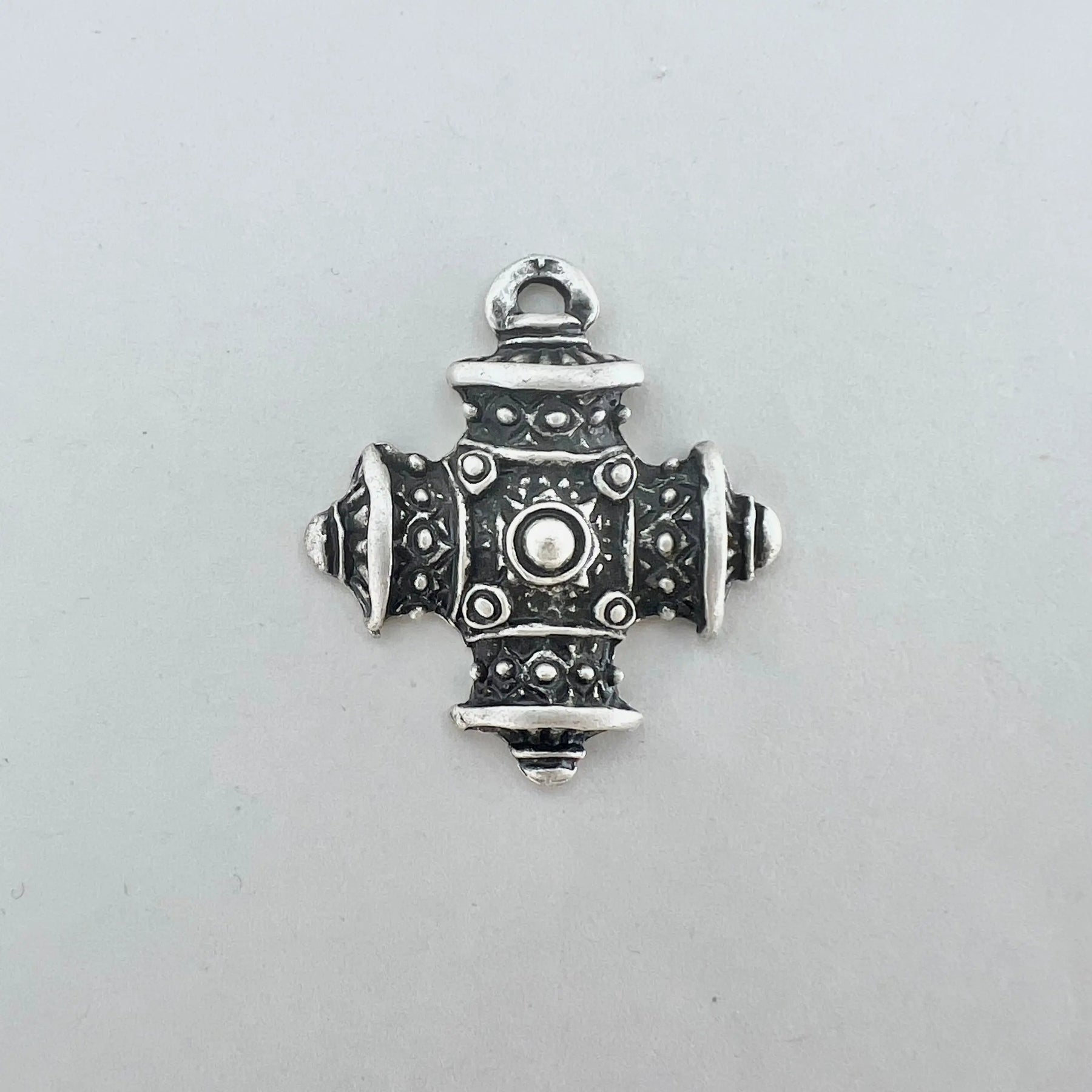 Hänge, korsskors, silverpläterat och oxiderat mässing, 31 x 18 mm