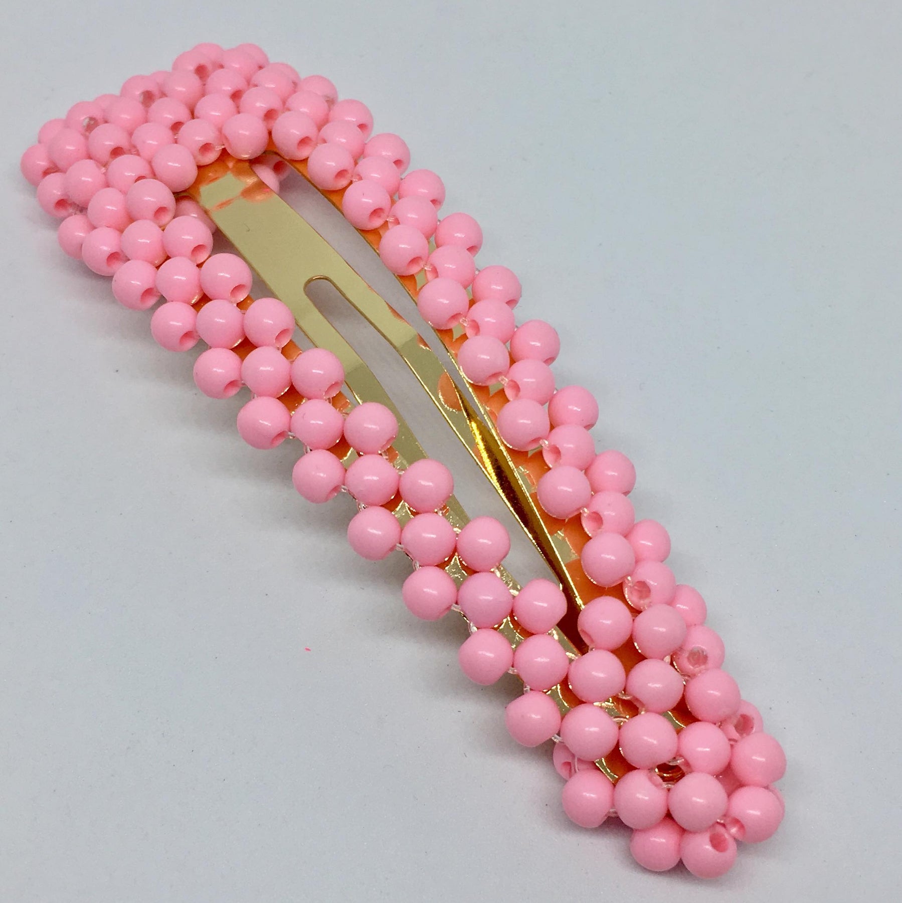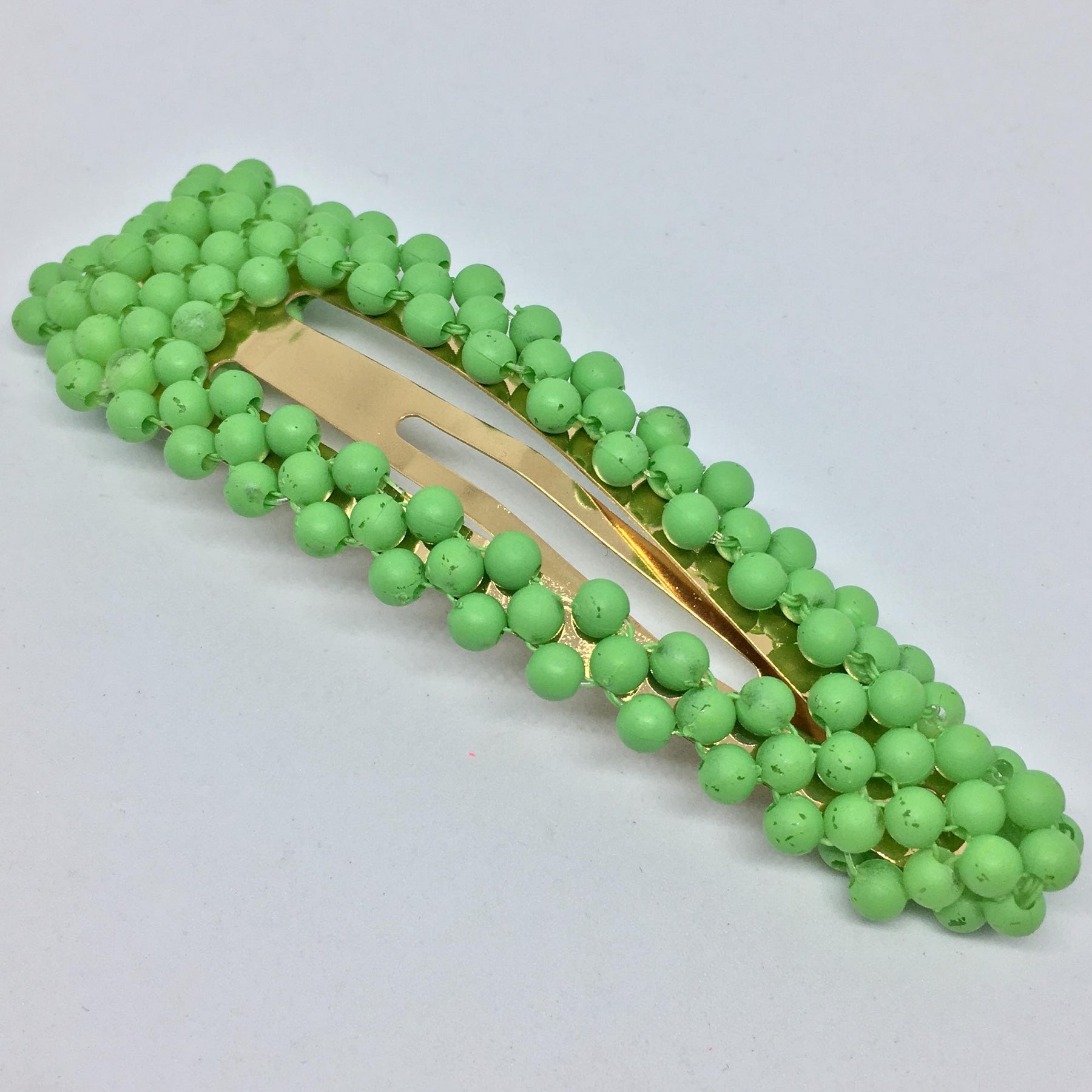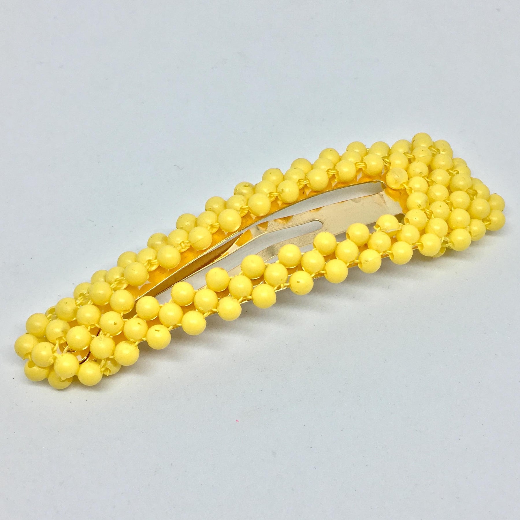 Klicka på hårspännen täckt med små runda plastpärlor i sommarfärger. Välj mellan flera färger.
