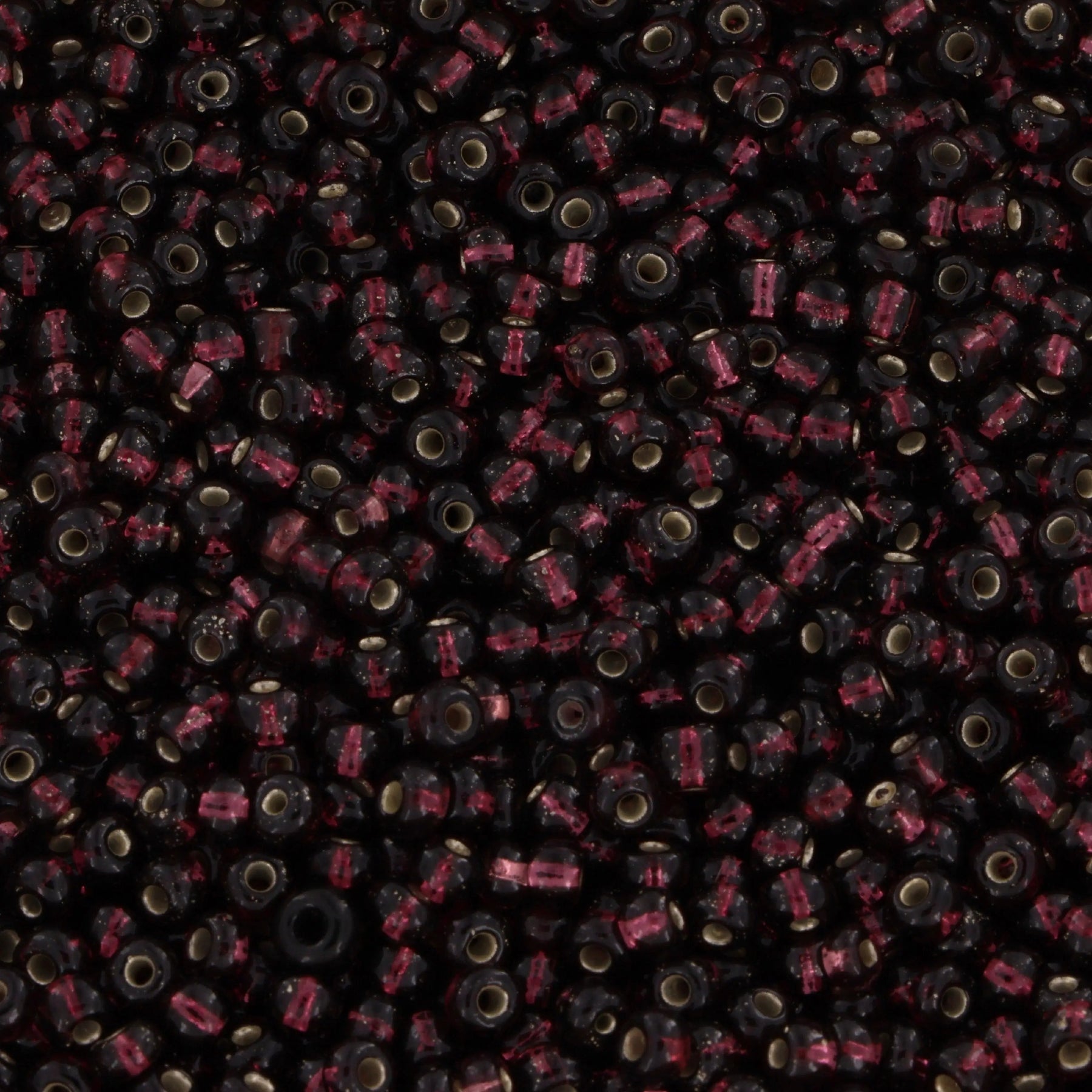 Lila glaspärlor, preciosa, silverlindrad mörk lila, bra köp
