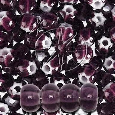 Mörk lila glaspärla med en inre vit stjärna.