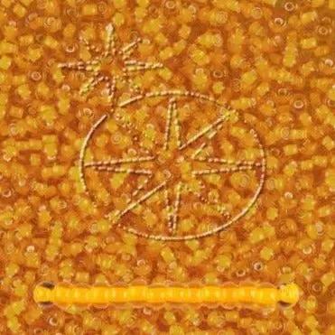Små glaspärlor i en lätt orange ton med vitt foder.