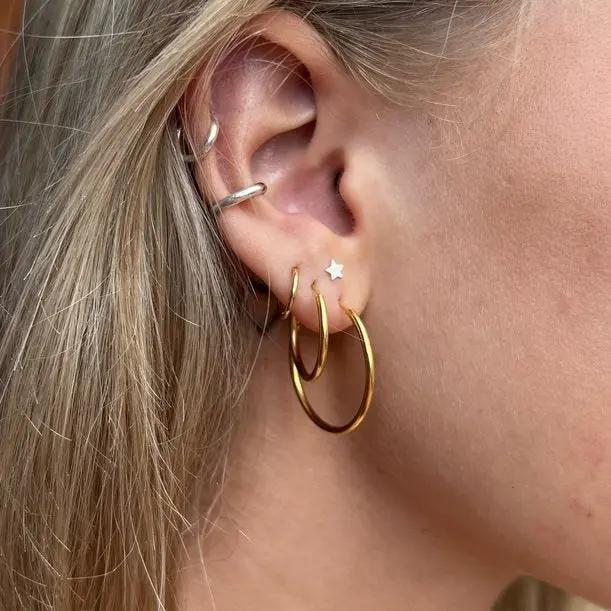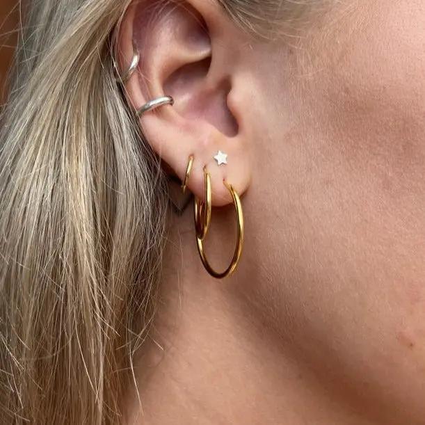 Örhängen, creoler i förgylld mässing, snäpplås, 12-25mm