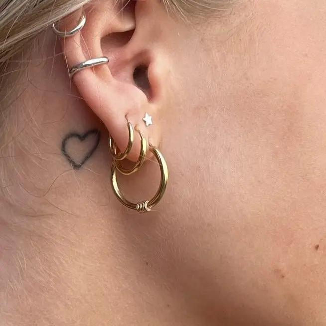 Upplev skönheten hos små örhängen i förgylld mässing, designade för att ge dig glädje under lång tid. Dessa örhängen är tillverkade med ett solidt lager av förgyllning, vilket garanterar hållbarhet och elegans. De finns i olika storlekar, så att du kan välja den perfekta passformen för din stil.