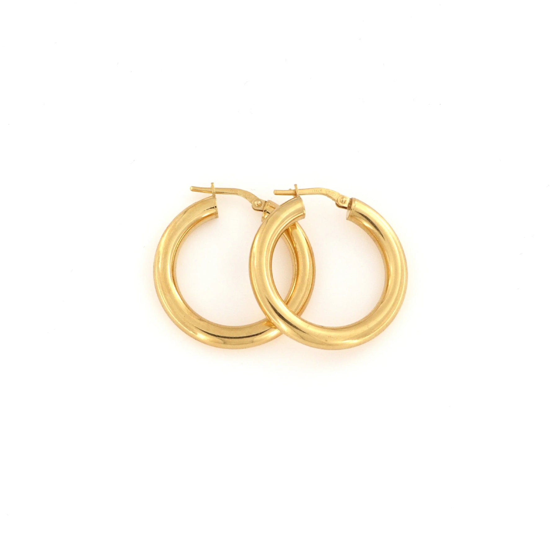 Trendiga chunky bågar i guldpläterat sterlingsilver med klicklås. Örhängen är förgyllda med ett extra tjockt lager av 24 karatguld så att de håller länge. Eftersom livet är för kort för dålig förgyllning!