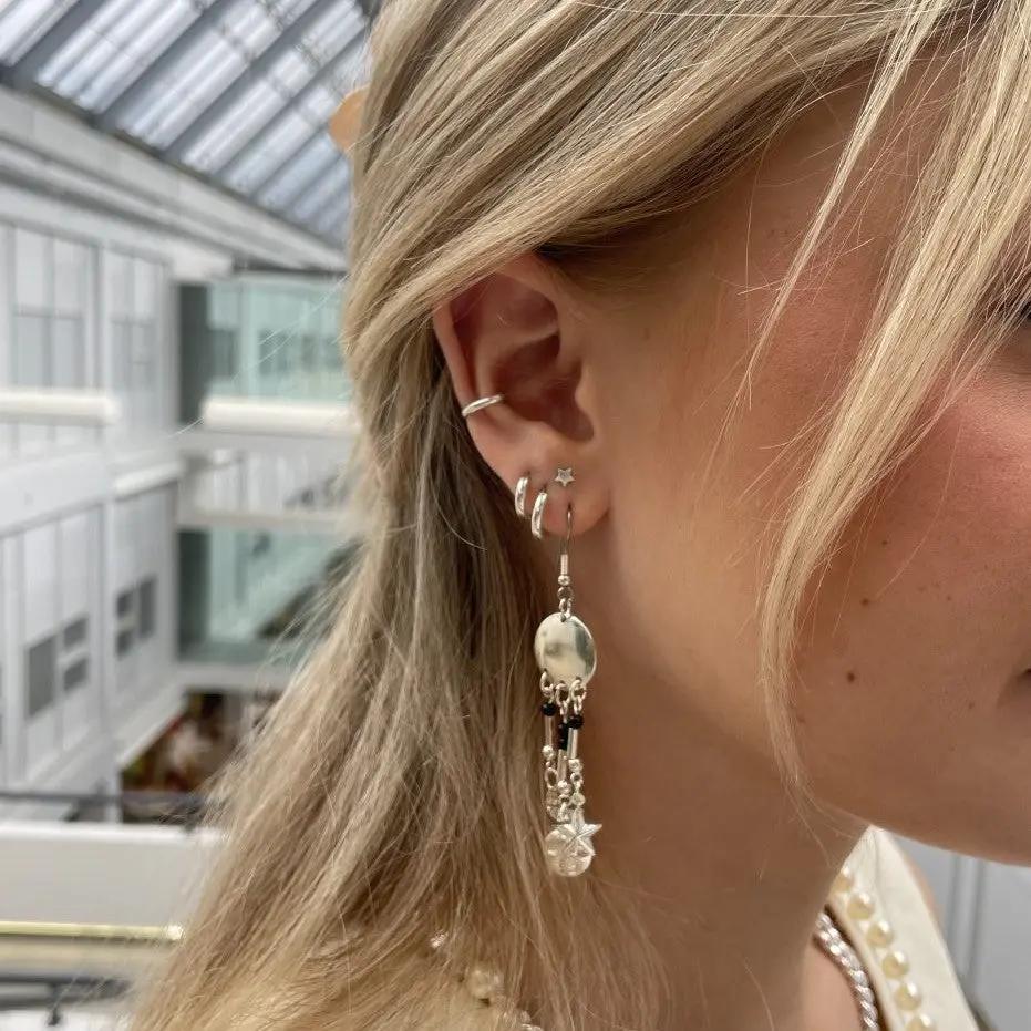 Örhängen, öron -krok sol, måne, stjärna, silverpläterad mässing