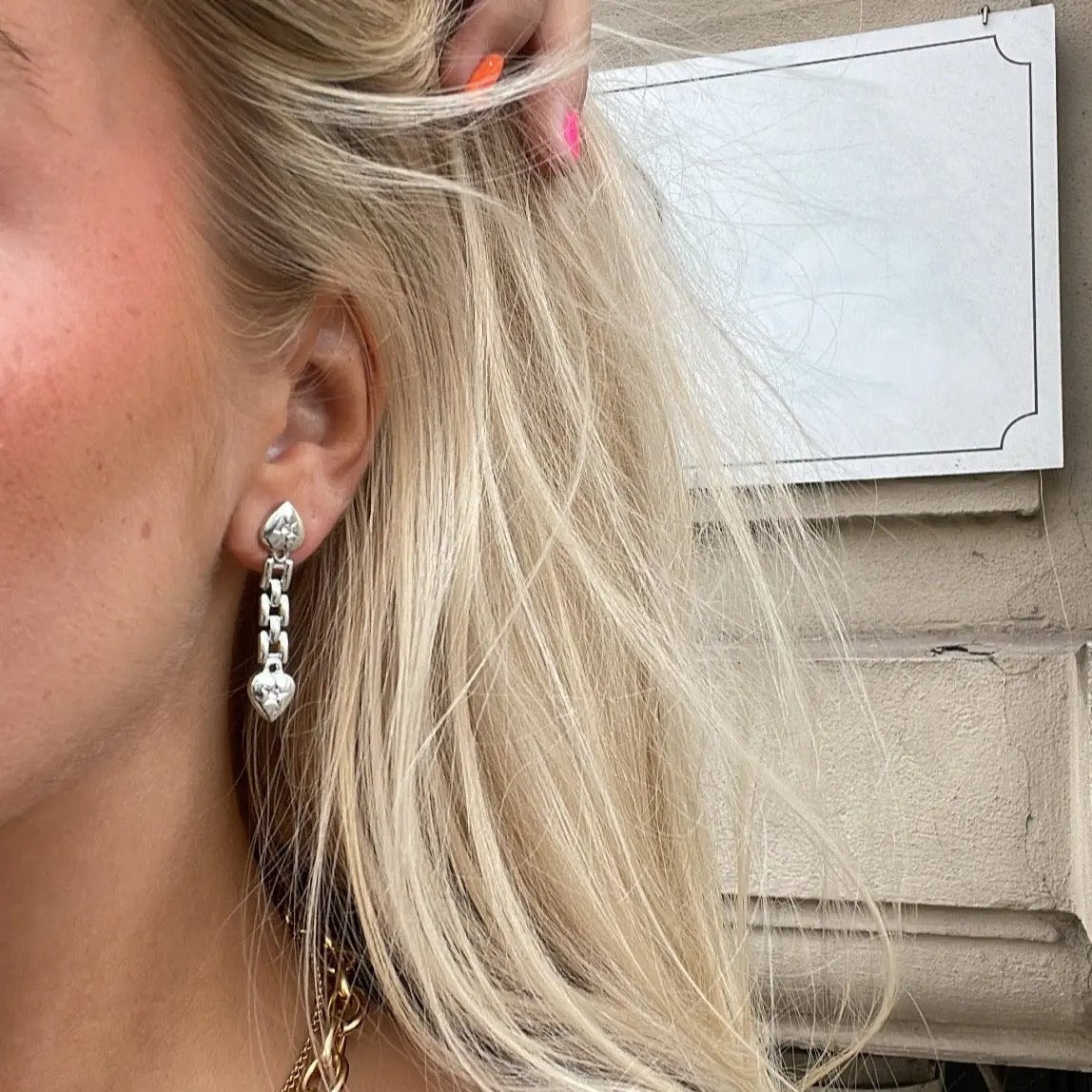 Var medveten om att örhängen endast är något silverbelagda och att beläggningen kan få slitage, vilket ses från priset.