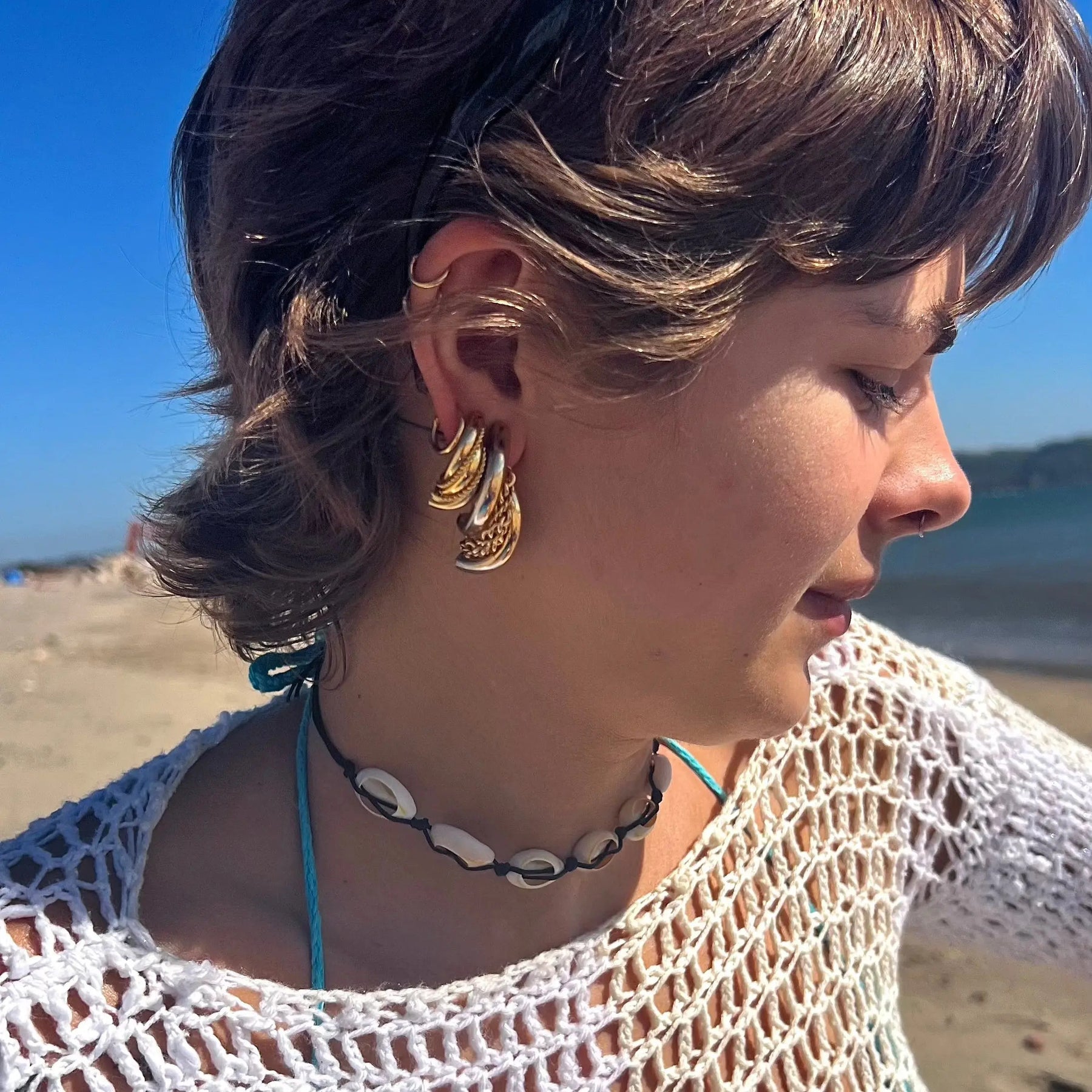 Dessa eleganta örhängen är gjorda av förgylld mässing och har en unik tvinnad design som lägger till en modern twist till varje blick. Med en diameter på 38 mm är de den perfekta balansen mellan enkelhet och uttalande