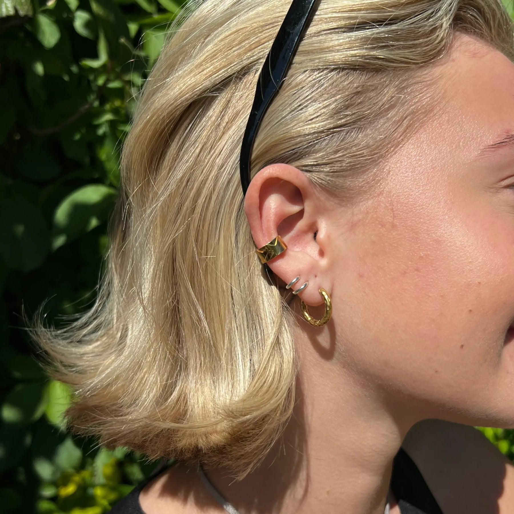 Vacker bred öronbuff av förgyllt sterlingsilver med ett minimalistiskt grenmotiv. Läcker öroncandy för att slutföra stylingen i öronen.