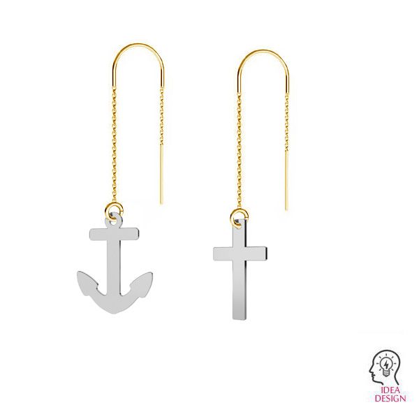 Öronkedjor, ankarkedja med krok och öppen syn, förgyllt sterling silver, 85 mm