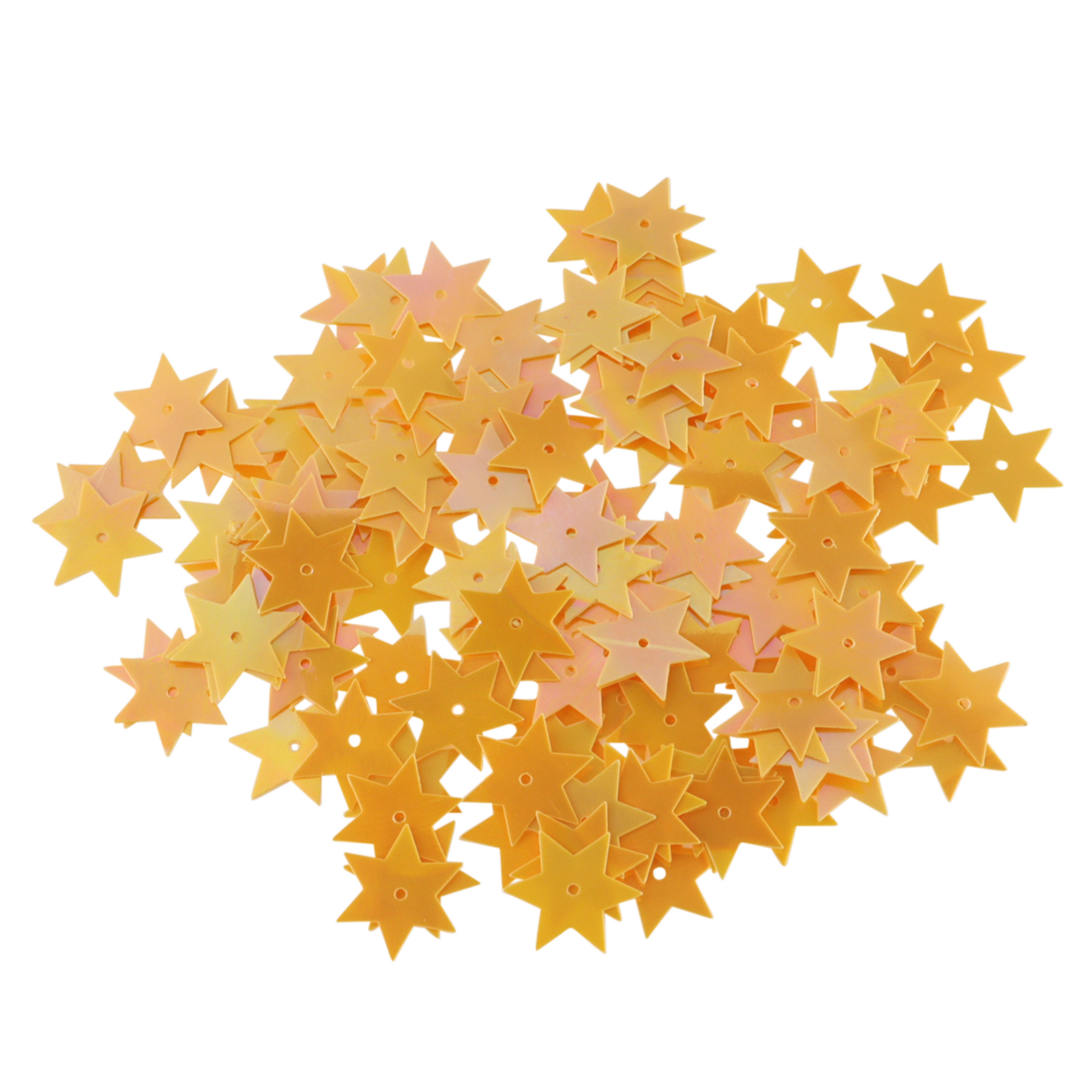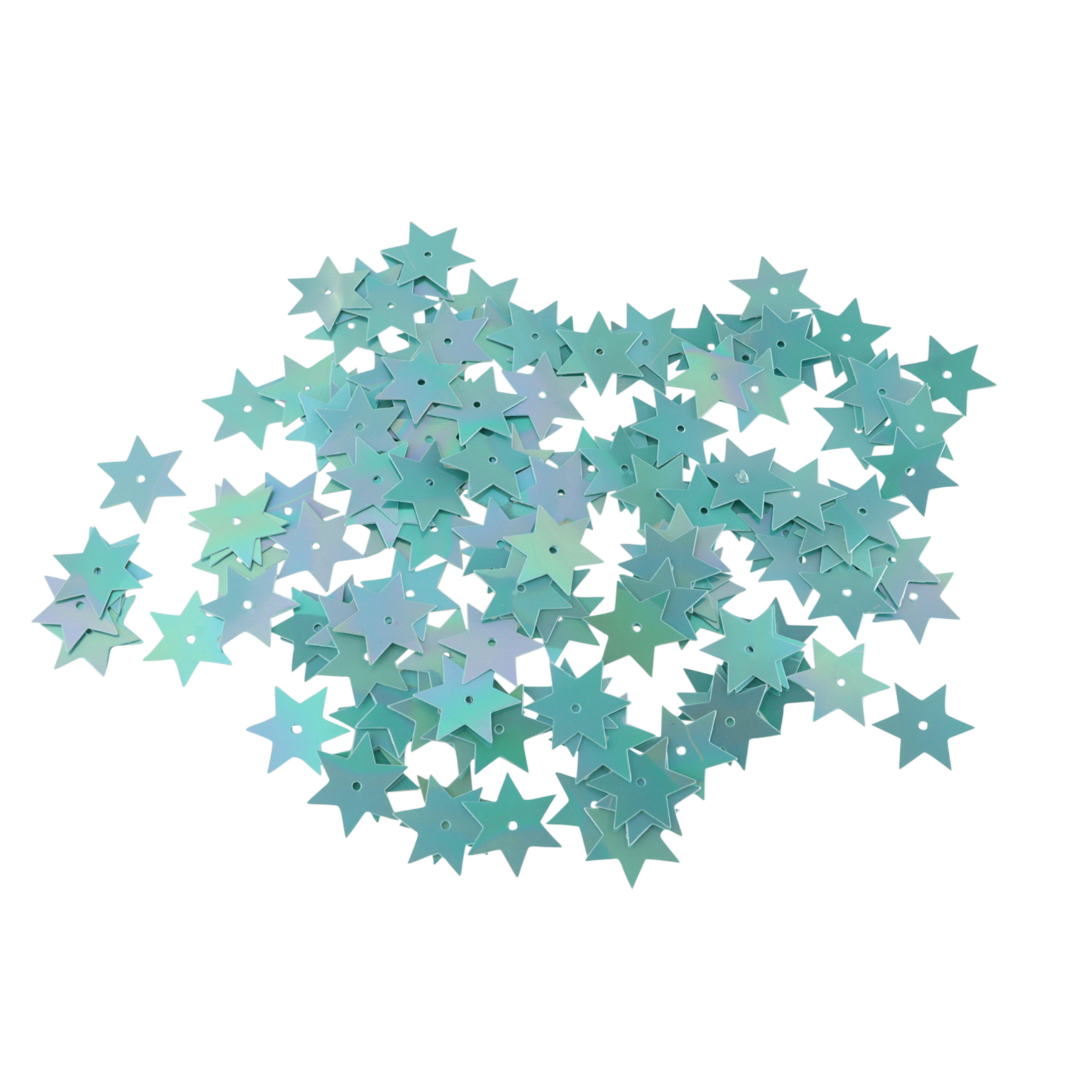 Dessa stjärnpaljetter är enfärgade och har en vacker beläggning som ger ett fint regnbågssken när ljuset träffar dem . De finns i storlekar mellan 14 och 17,5 mm och i flera vackra färger, så att du kan skapa rätt uttryck för dina kreativa projekt .