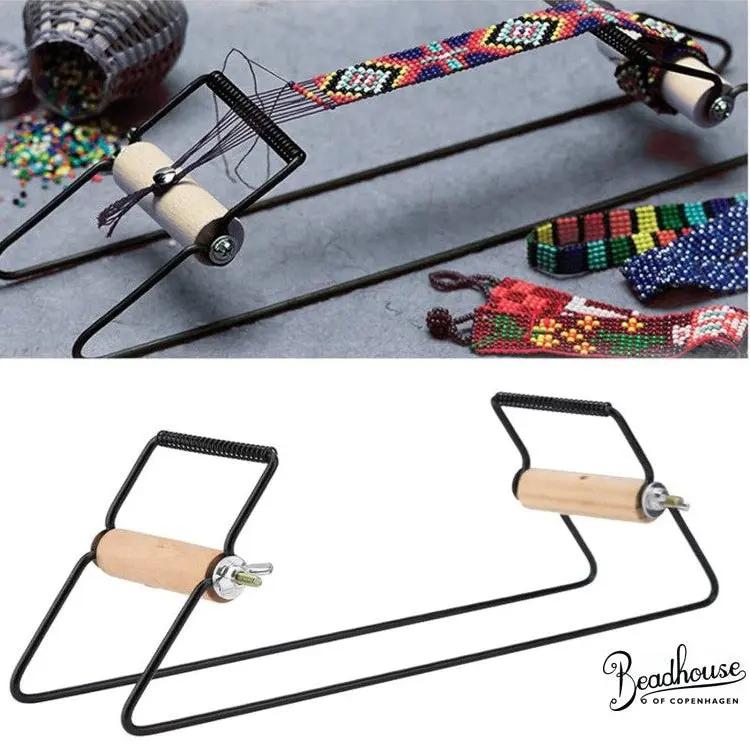 Pärlvävnad, som kan användas för att tillverka armband, fotledskedjor och mycket mer med små glaspärlor. Se bild för inspiration. Pärlvävstol.