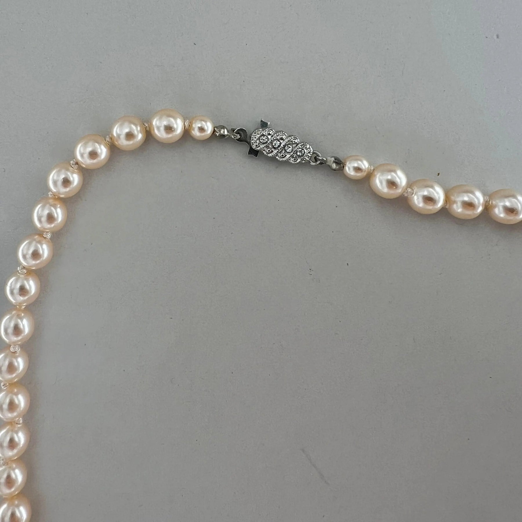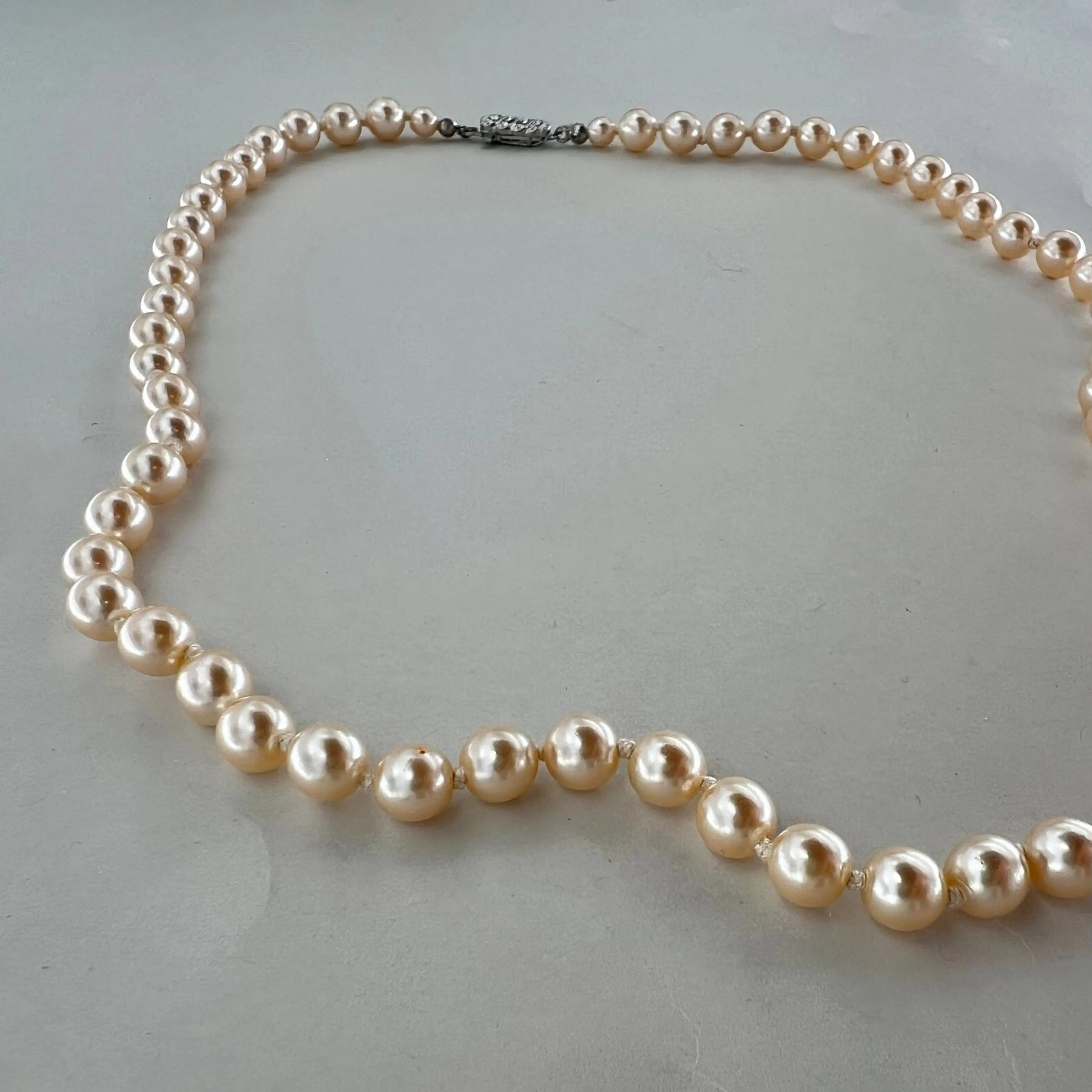 Halsband, beige vaxpärlor, silverpläterad mässing