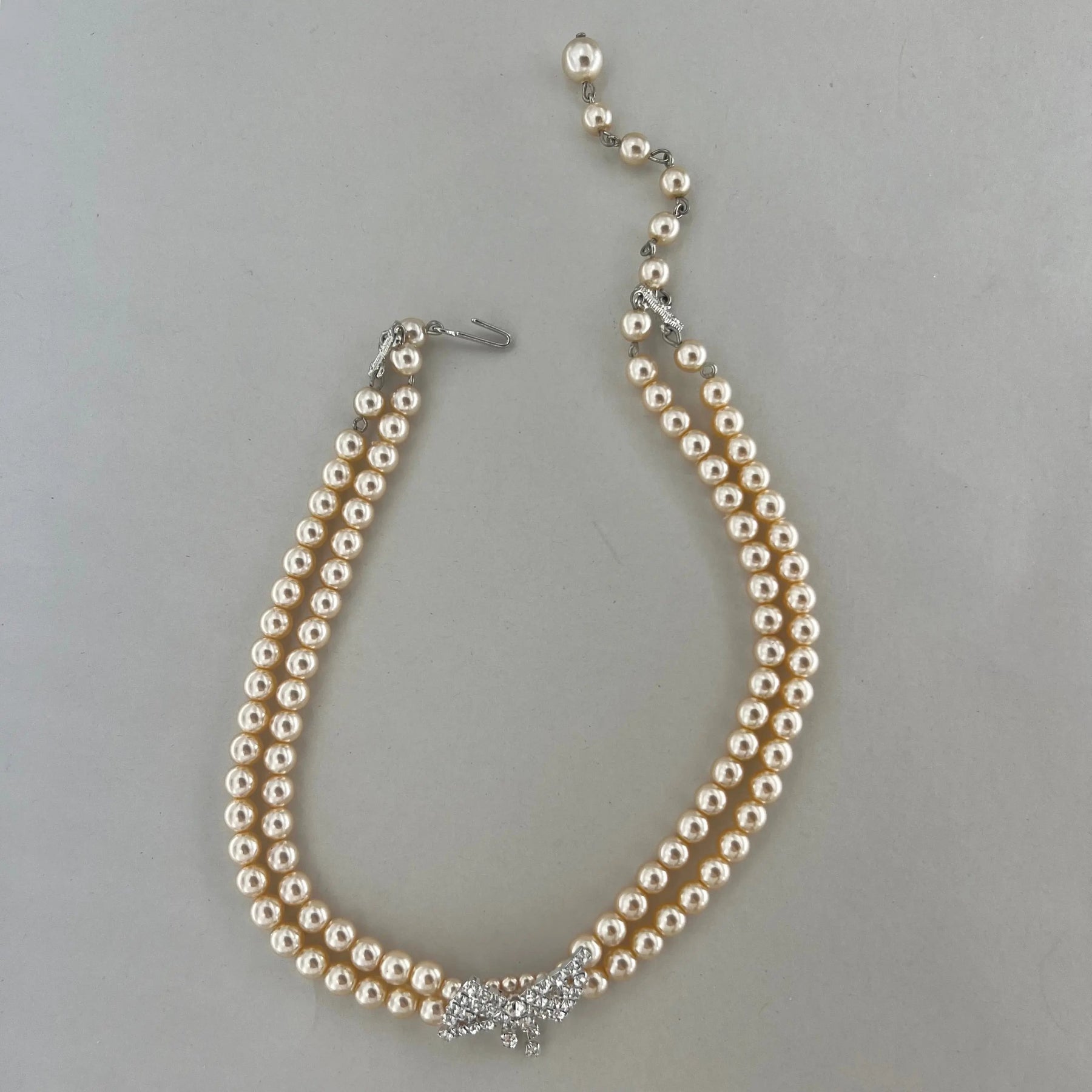 Halsband, choker med beige vaxpärlor och slinghänge, silverpläterad mässing