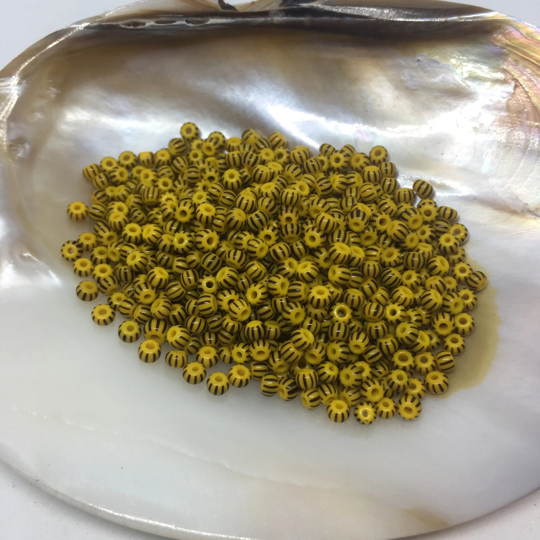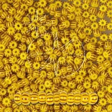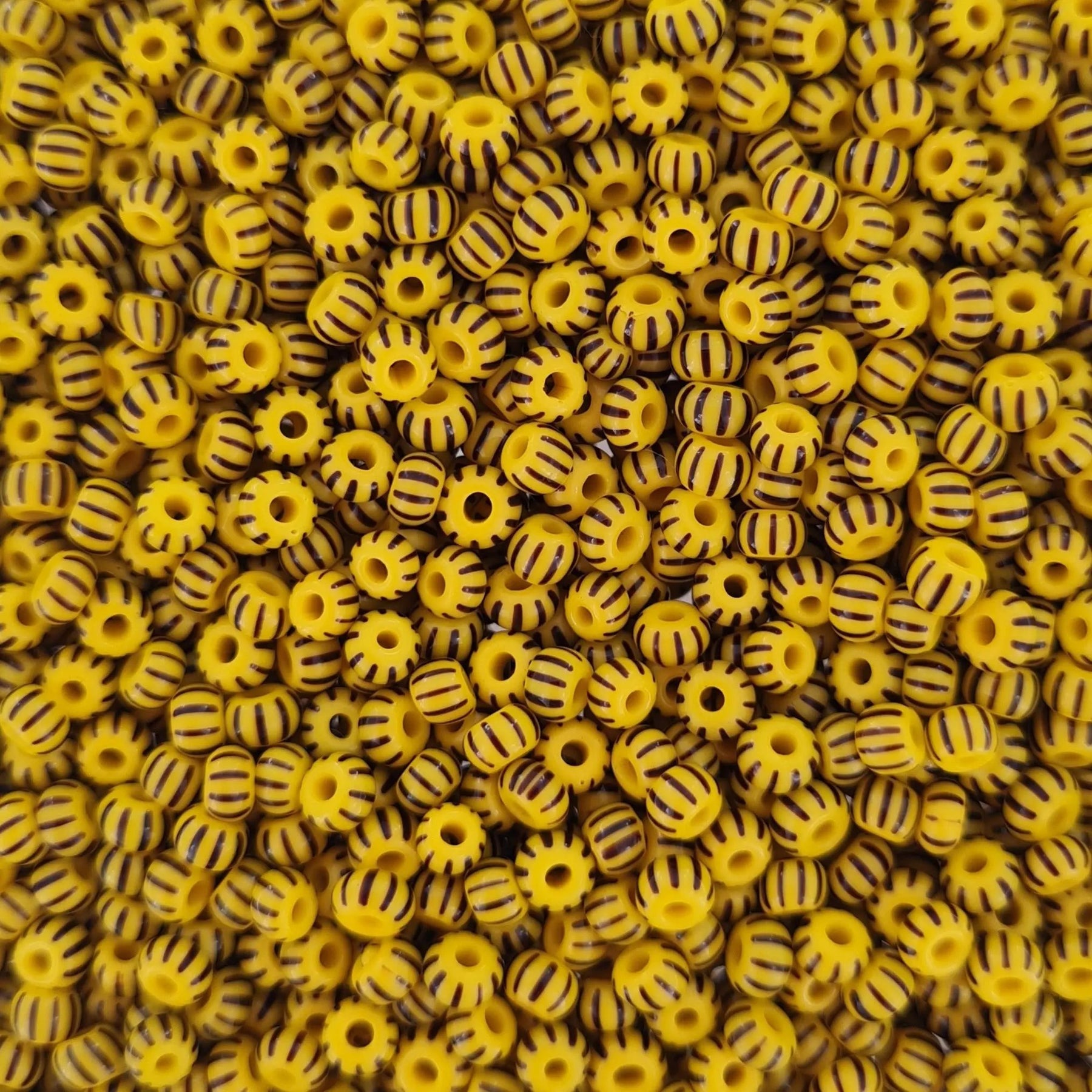 Randiga glaspärlor, preciosa, gul/svart tät randig