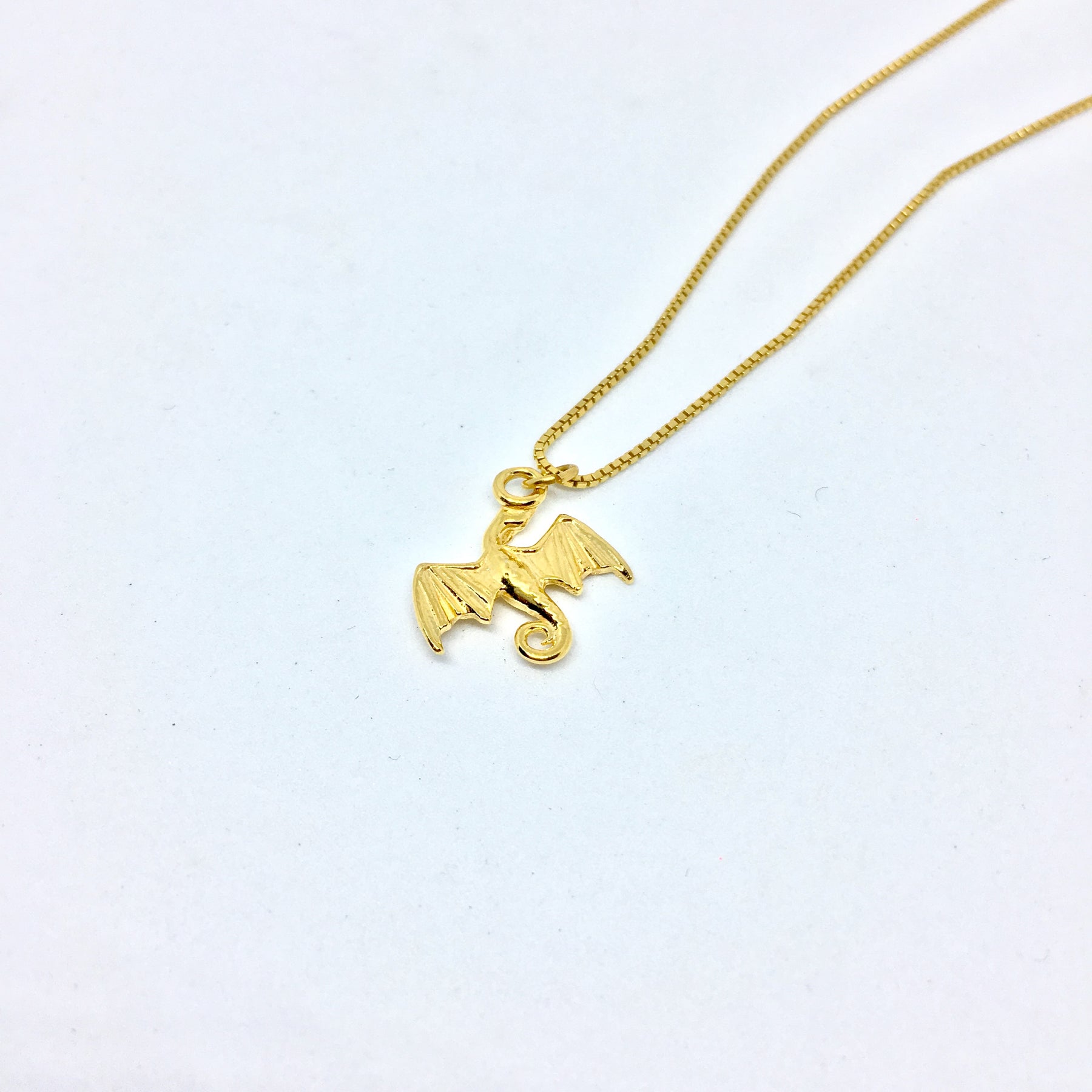 Upptäck det unika drakehänget, tillverkat av sterlingsilver och pläterat med ett tjockt lager 18k guld för extra hållbarhet och skönhet. Detta hänge är inte bara ett vackert tillskott till din smyckessamling, utan också en symbol för styrka och magi, perfekt för både vardagsbruk och speciella tillfällen.