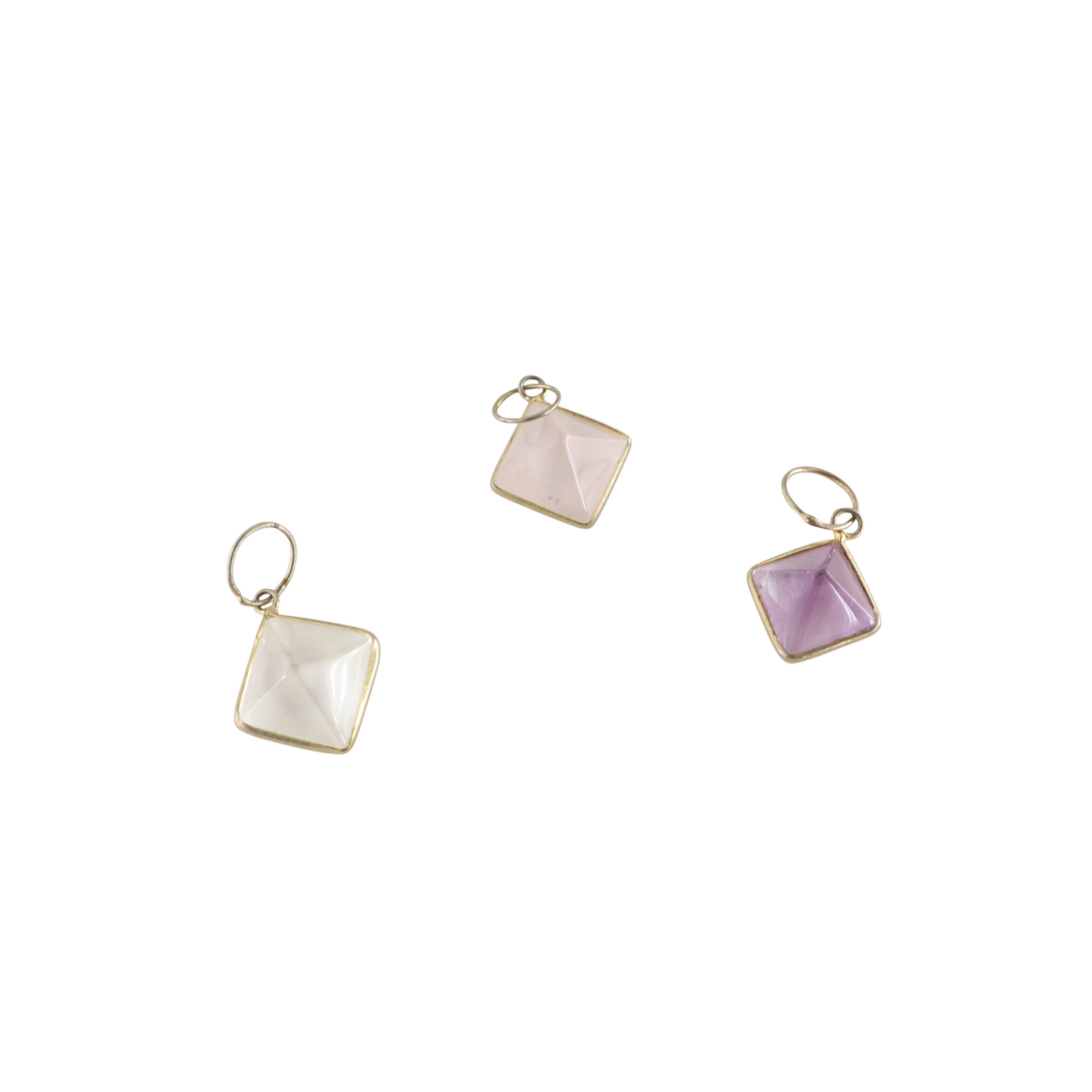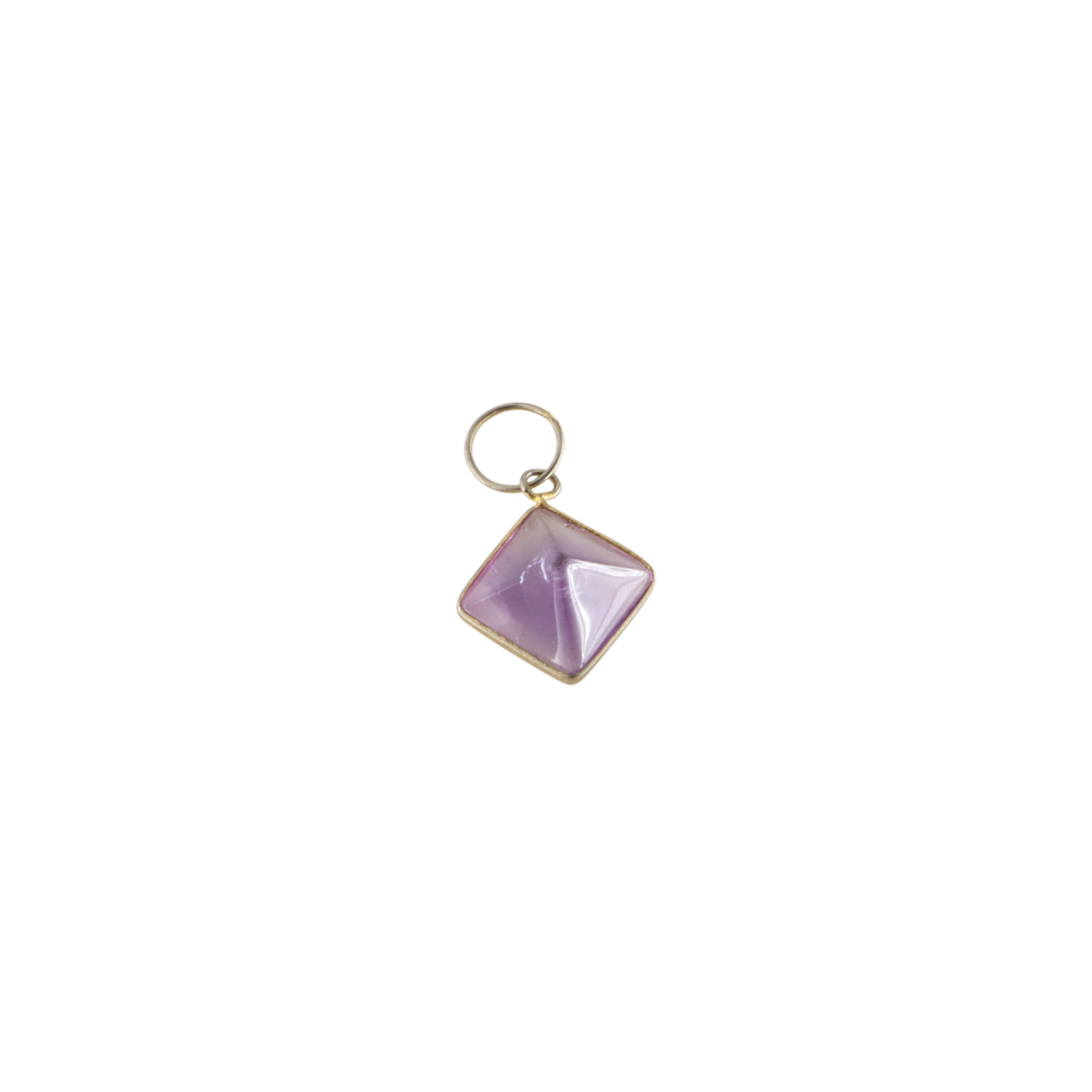 Et elegant kvadratisk ædelstensvedhæng, der hænger diagonalt i sit ene hjørne, indfattet i forgyldt sterlingsølv.