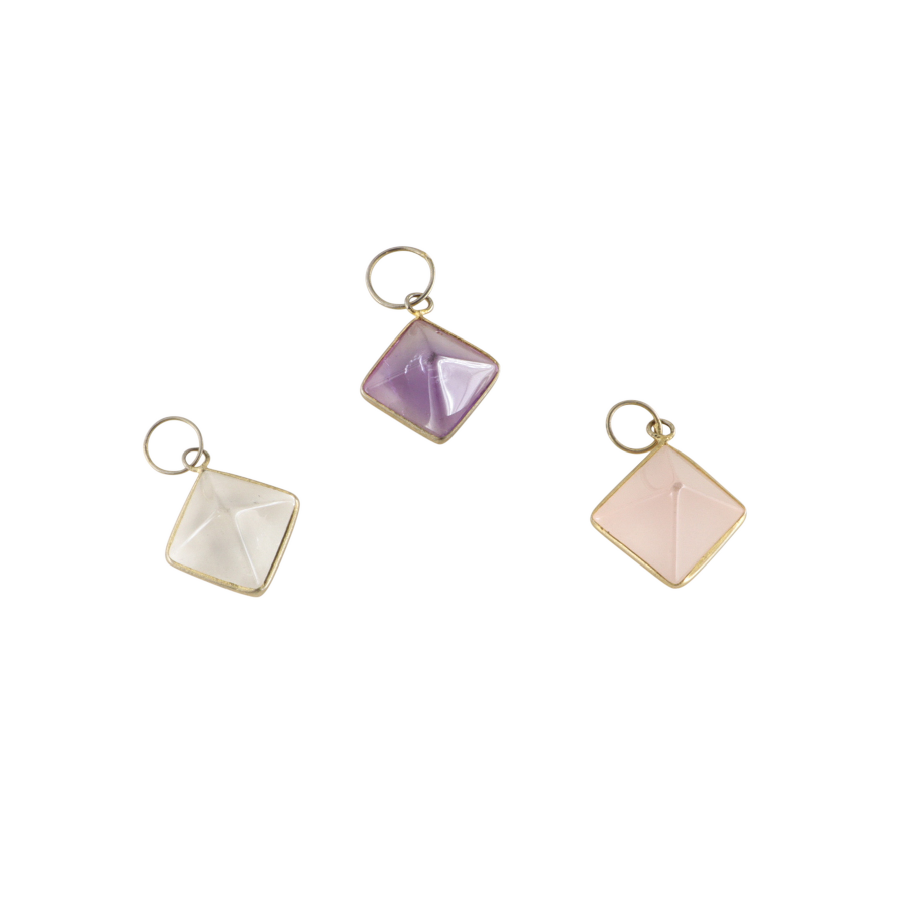 Vedhæng, kvadrat m. sten, forgyldt sterlingsølv, 9-11mm, flere varianter